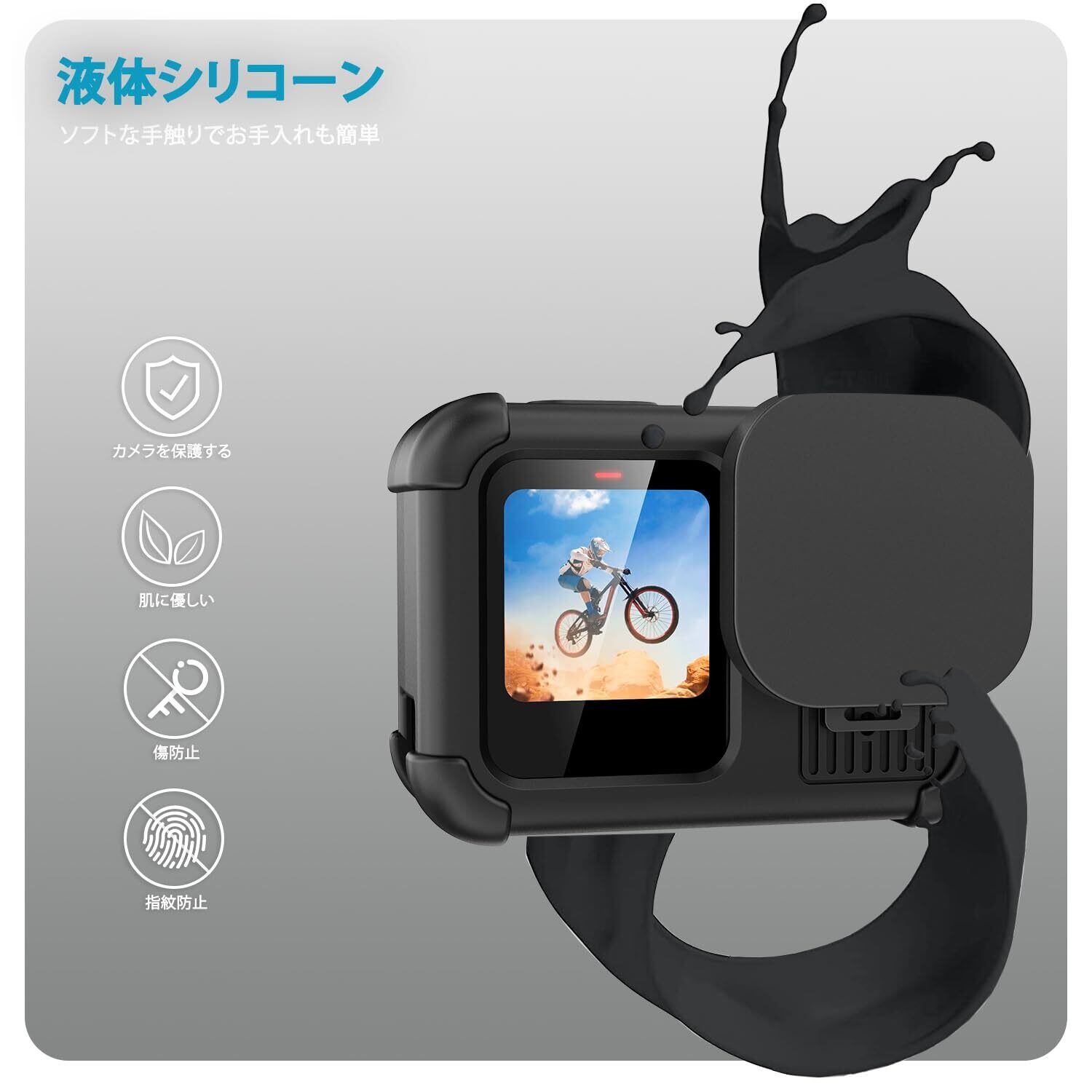 FitStill ブラック シリコン保護キット Go Pro Hero 13 Black 用、交換可能なバッテリーサイドカバー、シリコンレンズカバー、スクリーンプロテクターおよび調節可能なストラップ、Go Pro Hero 13 Black 用アクセサリーキット | BASE SHOP