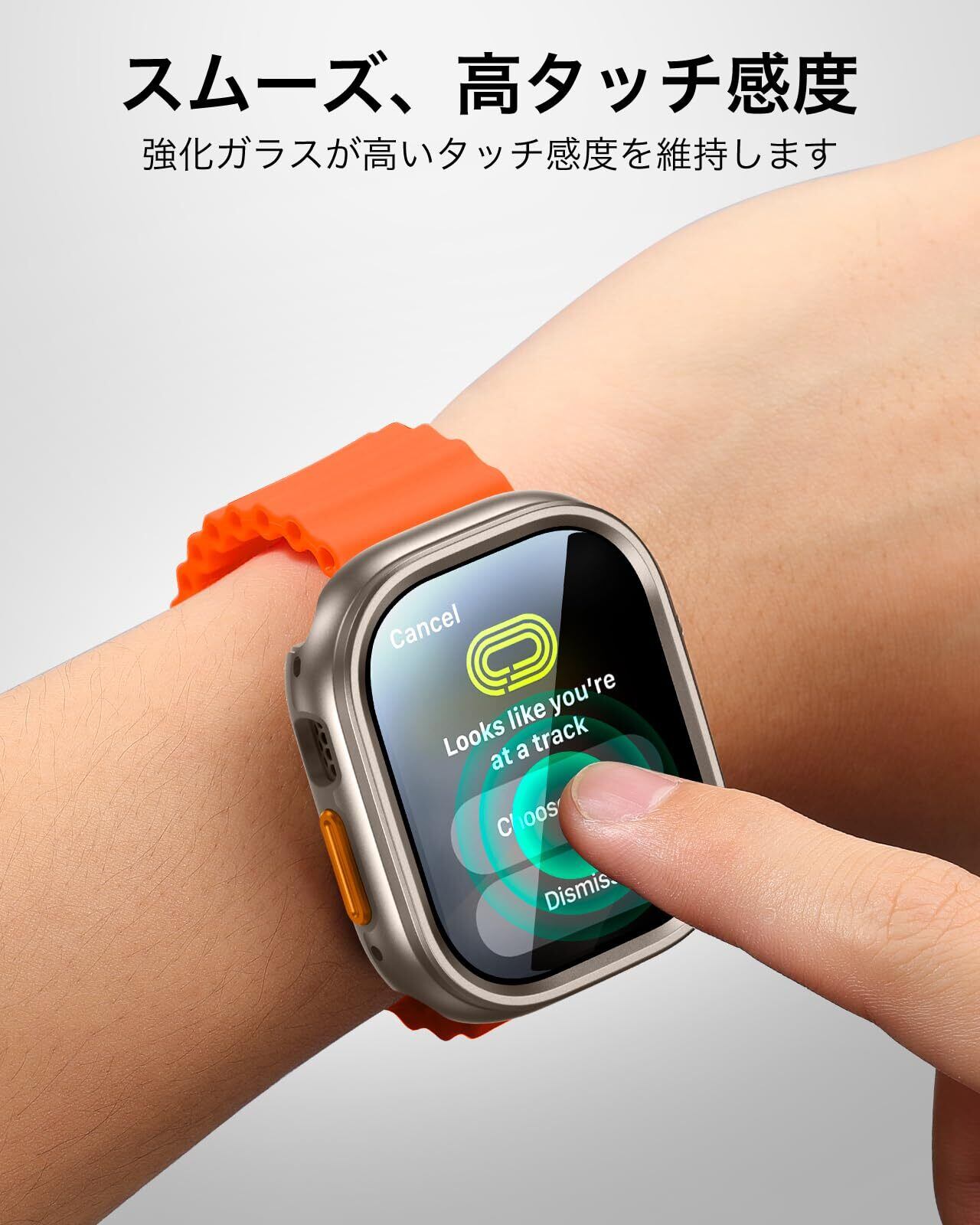 ESR Apple Watch Ultra 2 / Ultra 1 ケース(2024/2023/2022 49mm) 保護カバー 強化ガラスフィルム 2枚つき Armorite Series アップルウォッチカバー 全面保護 耐傷性 指紋防止 チタニウム色 | BASE SHOP