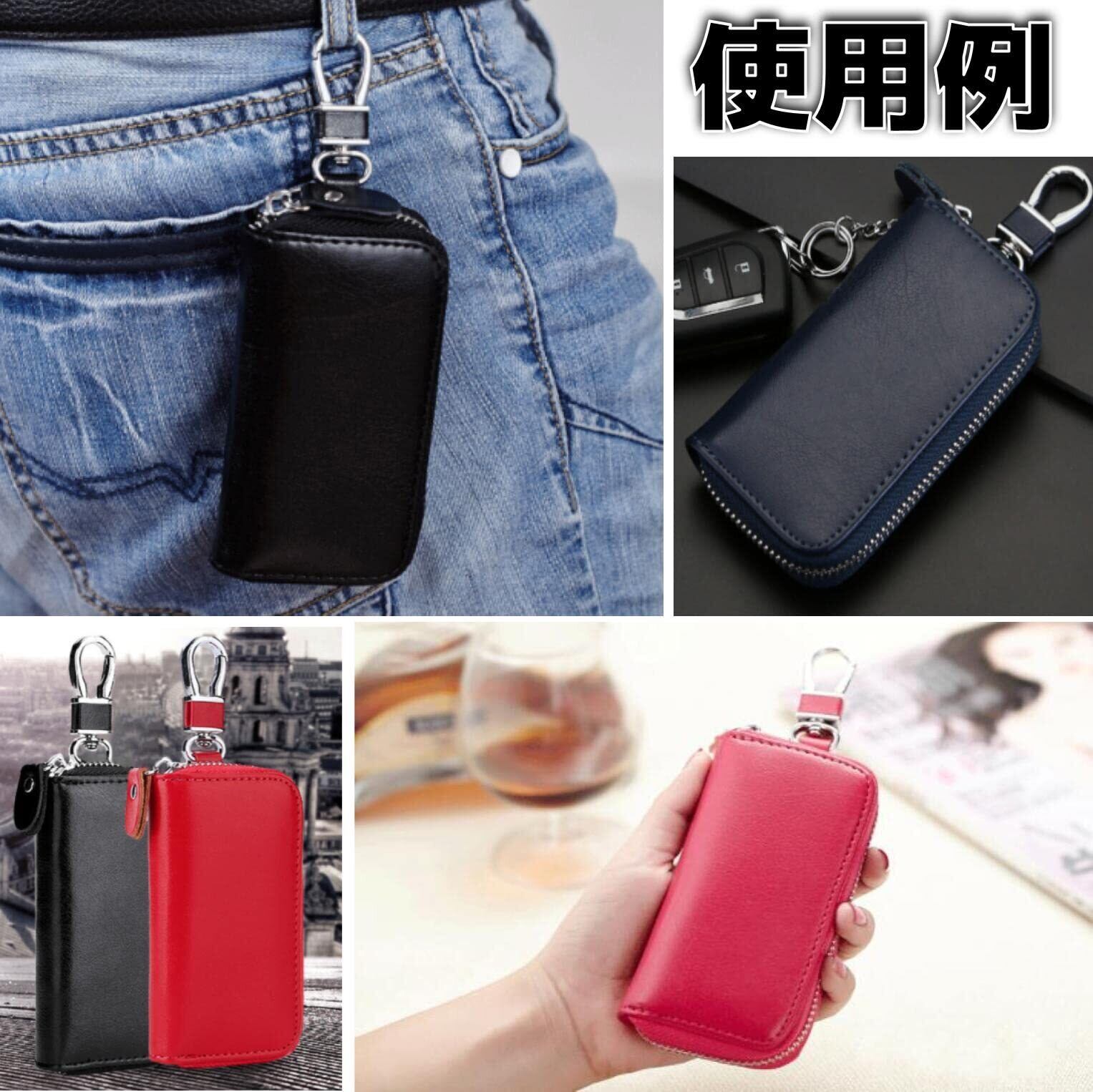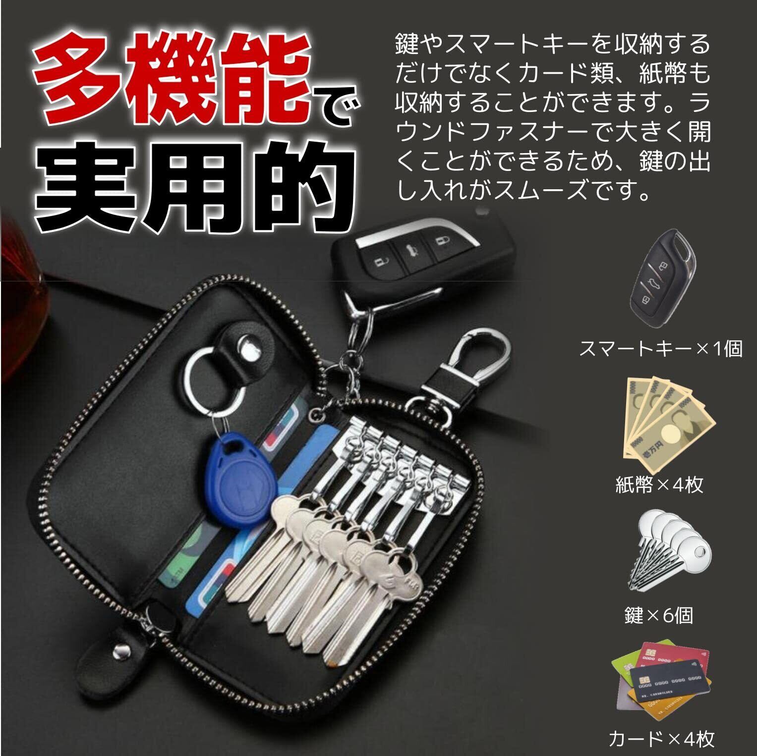 【多機能で実用的】鍵やスマートキーを収納するだけでなくカード類、紙幣も収納することができます。ラウンドファスナーで大きく開くことができるため、鍵の出し入れがスムーズです。
