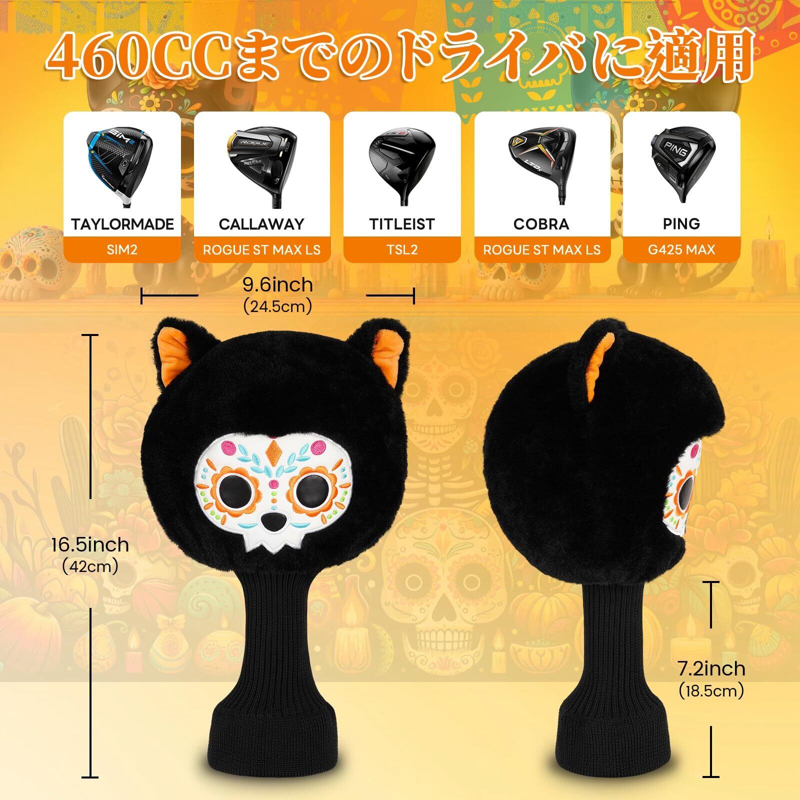【モンスター】可愛い黒猫デザインとして作られたドライバーのヘッドカバー、あなたのゴルフバッグに癒しさを加えます。家族や友へのプレゼントには最もです。