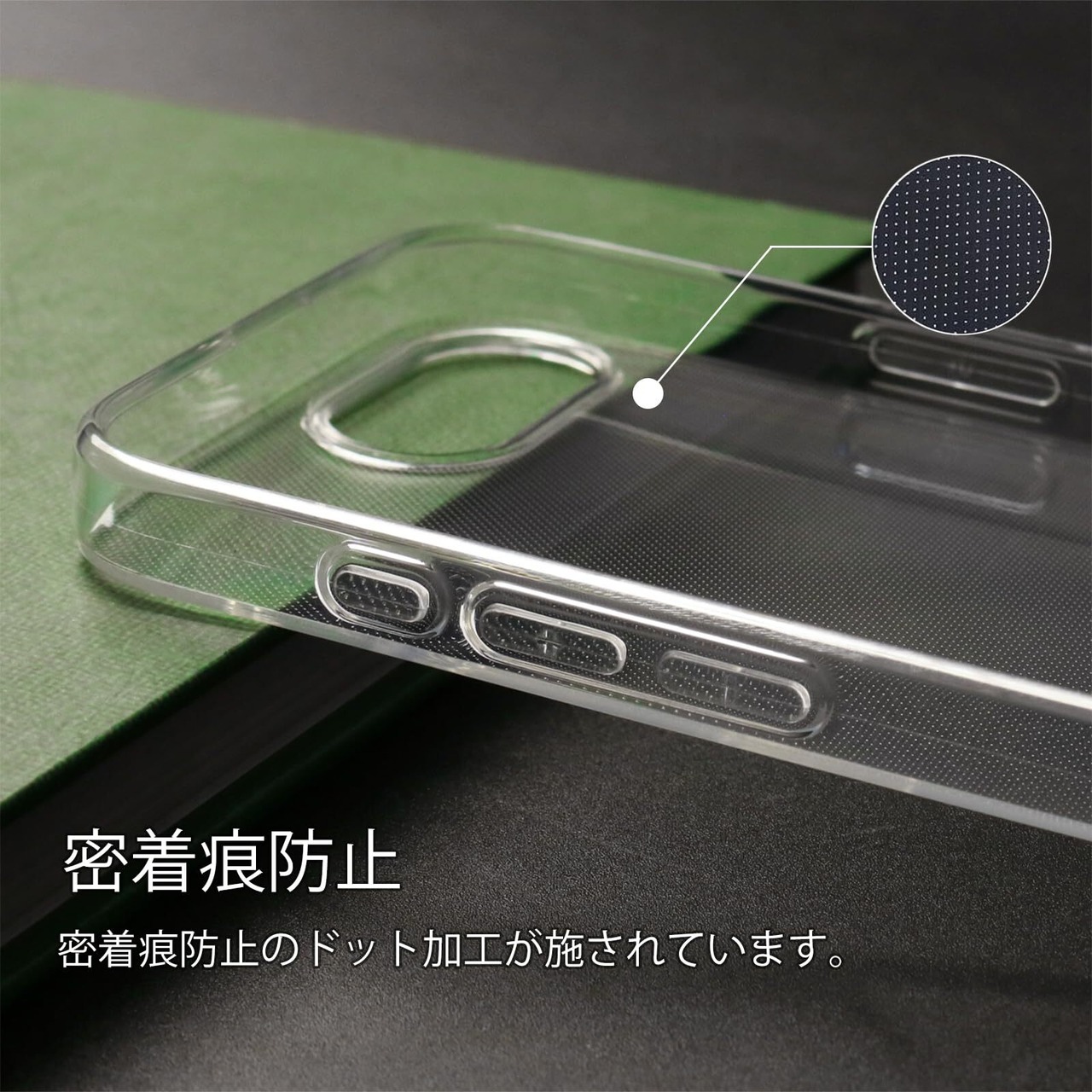 【クリアケース】極薄で透明な保護ケースでスマホの手ごたえはそのままです。また黄ばまない材質を使用しているので耐久性も優れています。