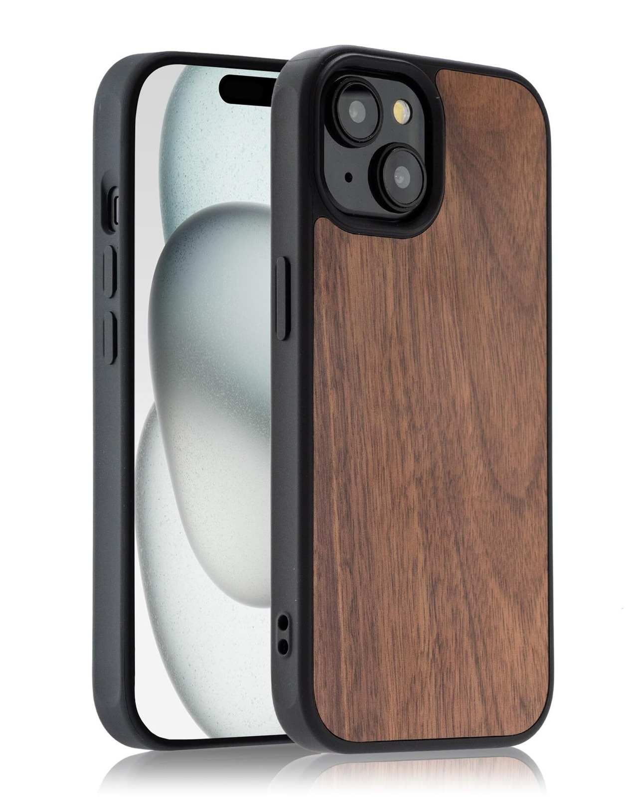 【JAC】 iphone15ケース ウッド 北欧風天然木 お洒落 アイフォン15ケース 高級 耐衝撃 ワイヤレス充電対応 日本企画品 (iphone15 ウォルナット)