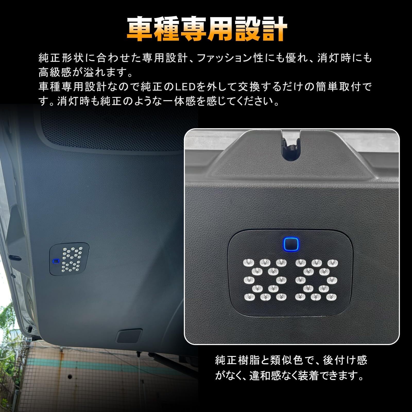 【車種専用設計】こちらの増設ラゲッジランプは純正パネル同様の質感と類似色であるために違和感がありません!スイッチは青く光っており夜でも押す場所がはっきりわかって、ファッション性に優れ、消灯時にも高級感を溢れます。専用設計ならではのフィッテングを体感してください。