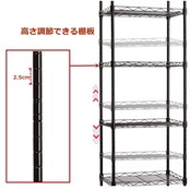 【商品仕様】本体:スチール(粉体塗装)サイズ:6段 幅42cm×奥行30cm×高さ160cm パーツ シート:フック*4 マット*6 マットは物の落下を防ぐことができます。(購入前にサイズを確認してください)