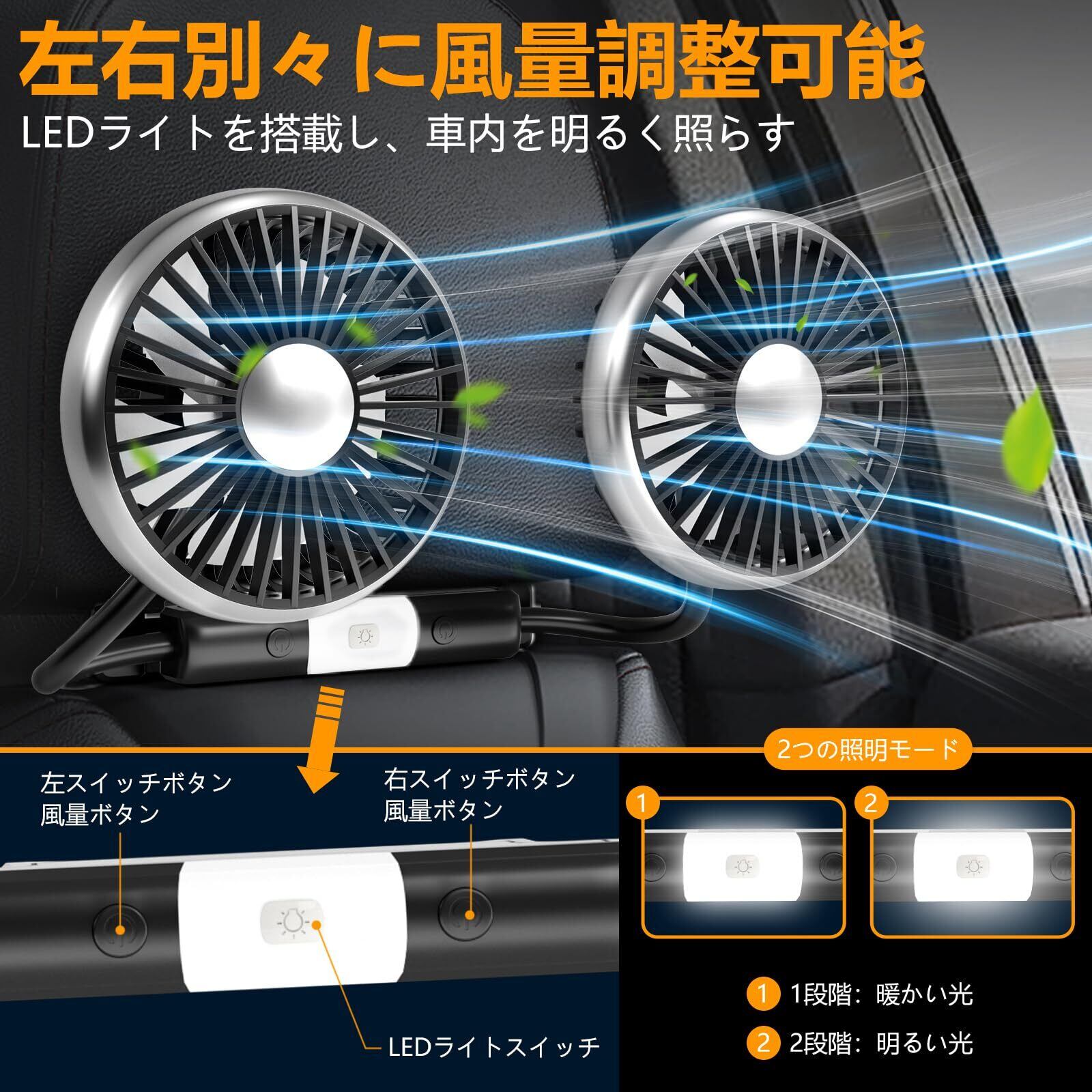 【2025年夏新登場】Dealswin 車 扇風機 車載 車用扇風機 双頭車載ファン 後部座席用 USB ヘッドレストファン ライト付き 車載電動ファン 3段階風量 低騒音 360°角度調整可能 車中泊対策 カーファン 車せんぷうき 取付簡単 長配線 USB給電 熱中症対策 配線延長 取付簡単
