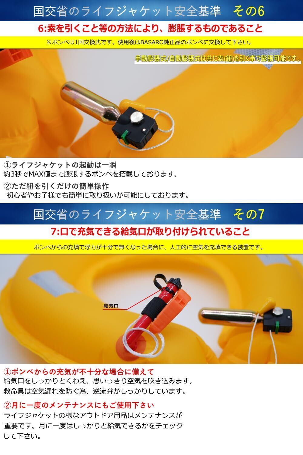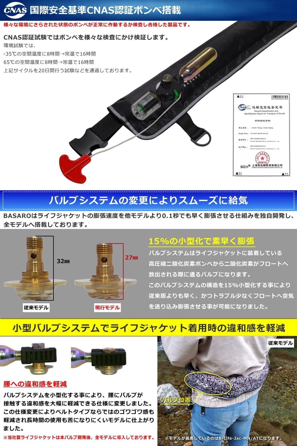 JES-BASARO (ジェスバサロ) ライフジャケット 手動膨張式 釣り 大人用 子供 腰巻き 腰 ベルトタイプ 日本国内メーカー B-Life-Jac-MN/AT 日本語取り扱い説明書 国際安全基準CNAS認証品ボンベ搭載