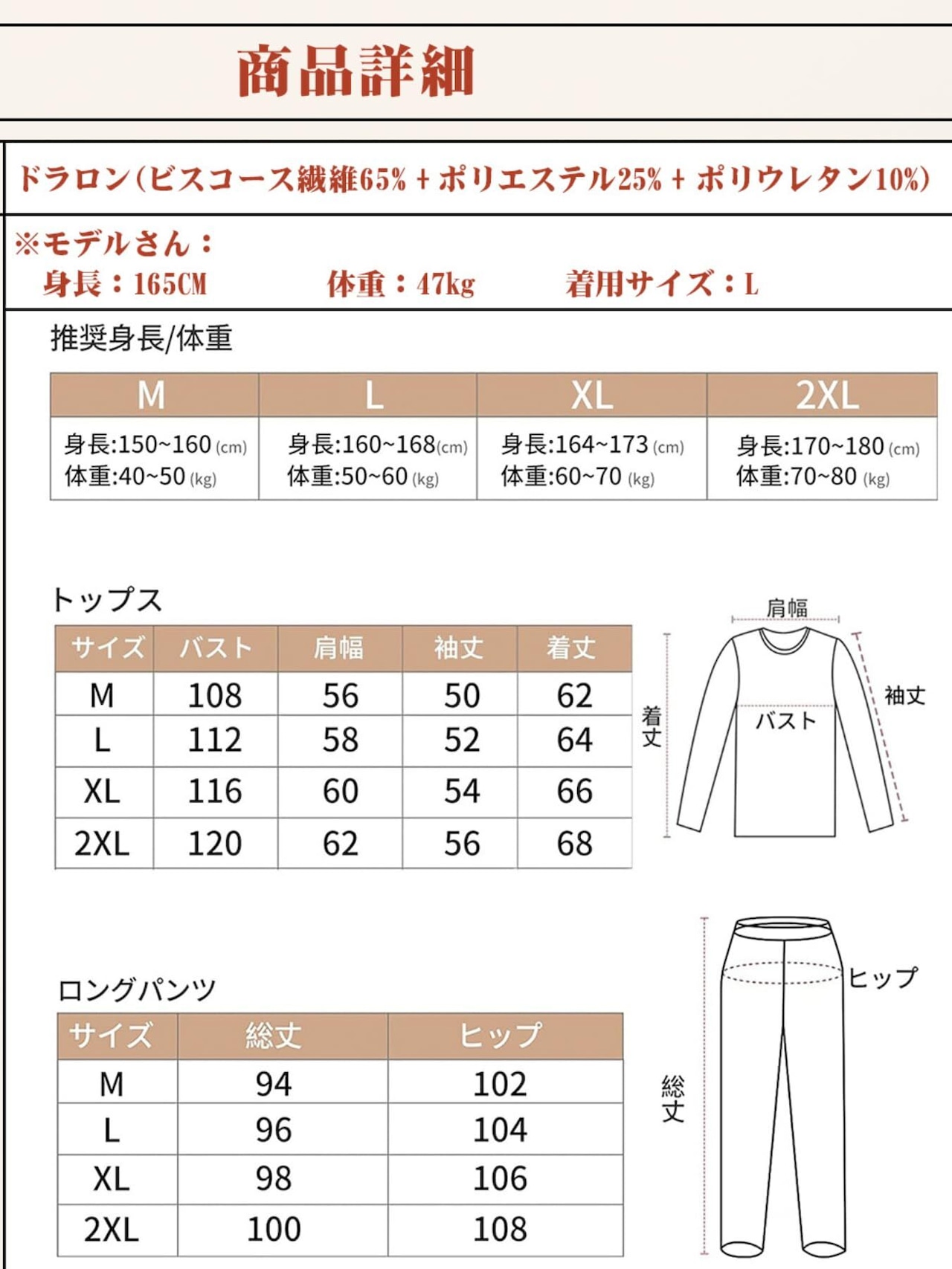 羊毛のような柔らかな新素材「ドラロン」を使用した長袖とロングパンツの上下セットのあったかルームウェアです。