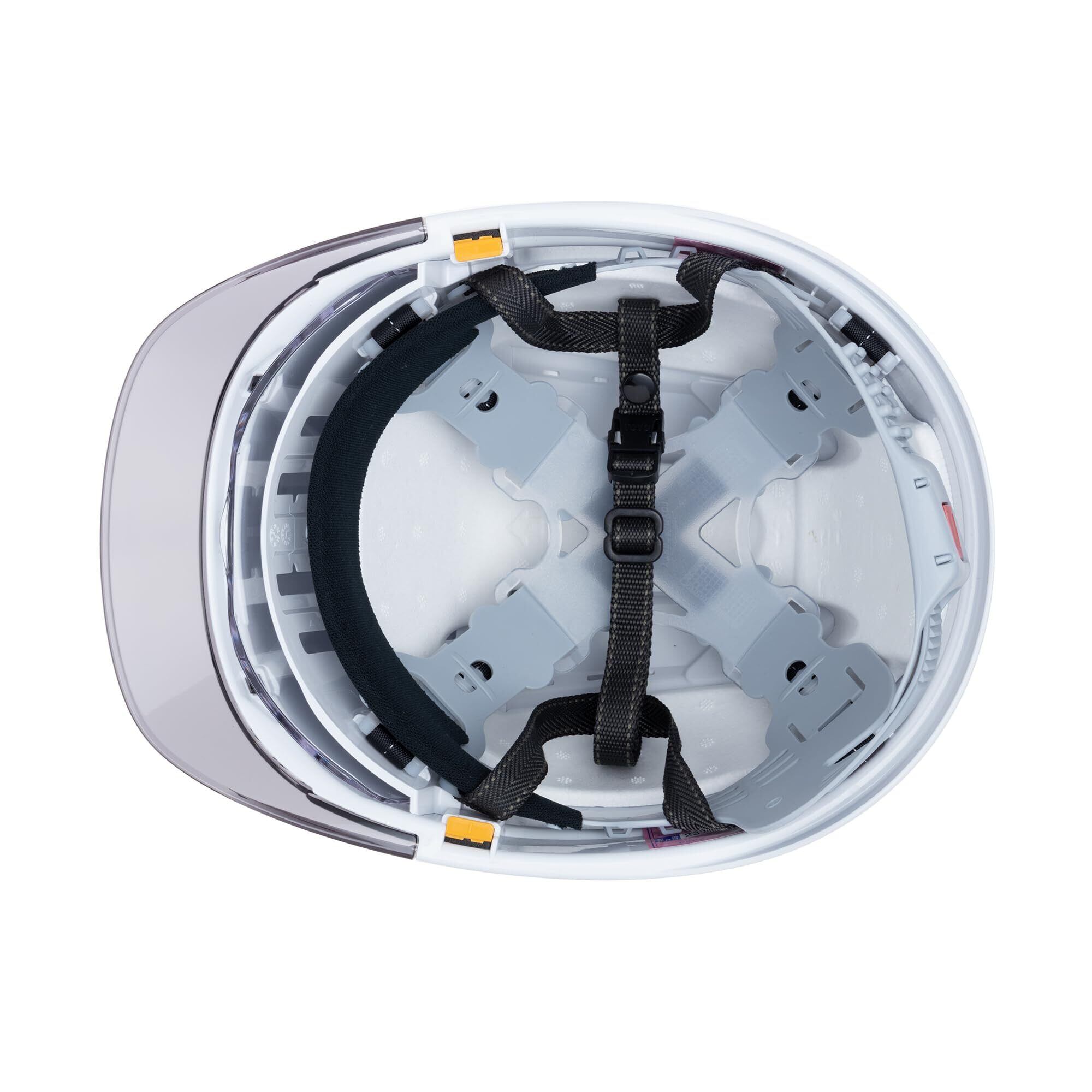 ・幅の広いシールドレンズ内蔵で、交換できる透明ヒサシを採用し、帽体内の通気性アップ