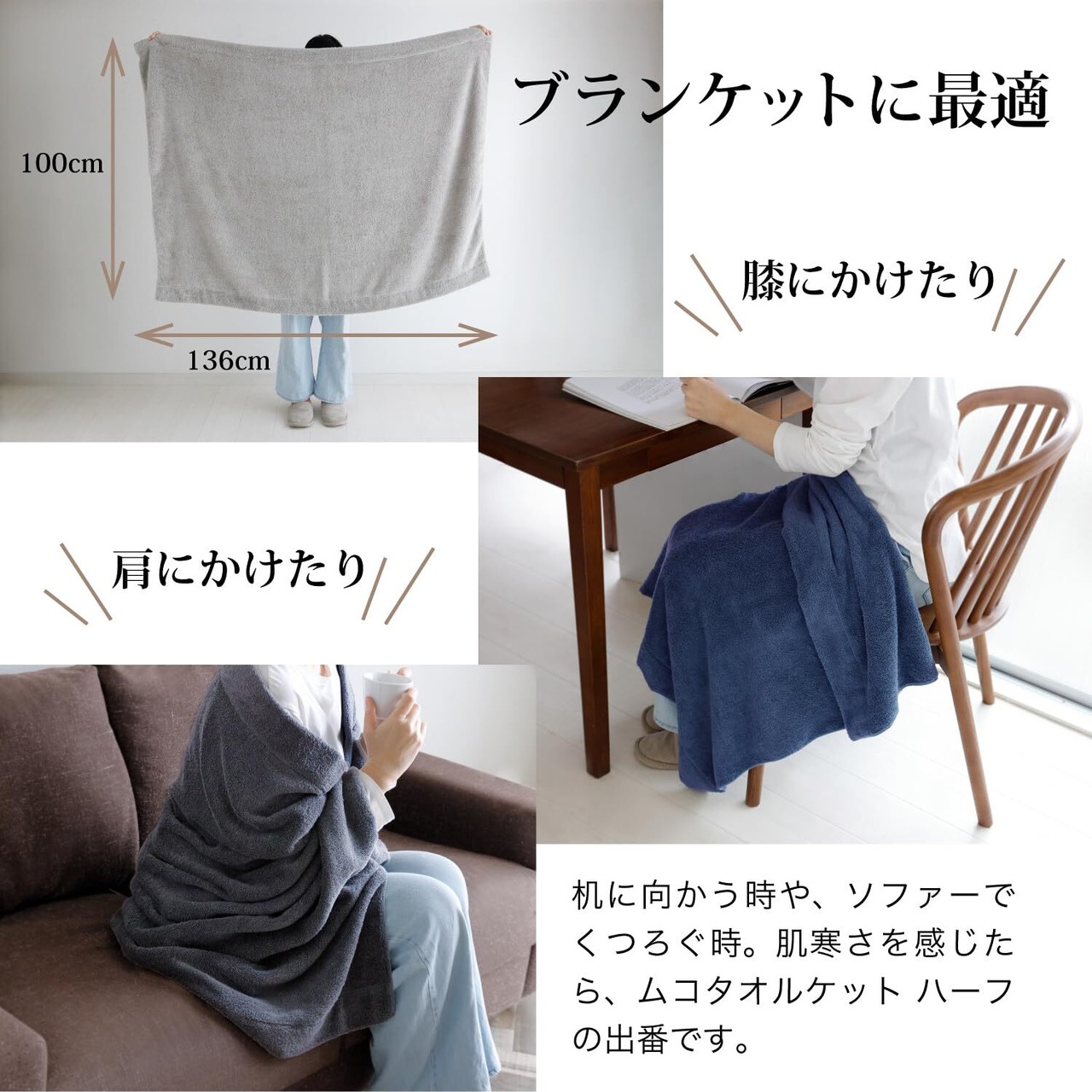 ムコタオル タオルケット ハーフ(約100×136cm) ハーフケット 厚手 触り心地 ふわふわ 綿100% 泉州タオル 日本製 洗える 無地 1枚 ベージュ