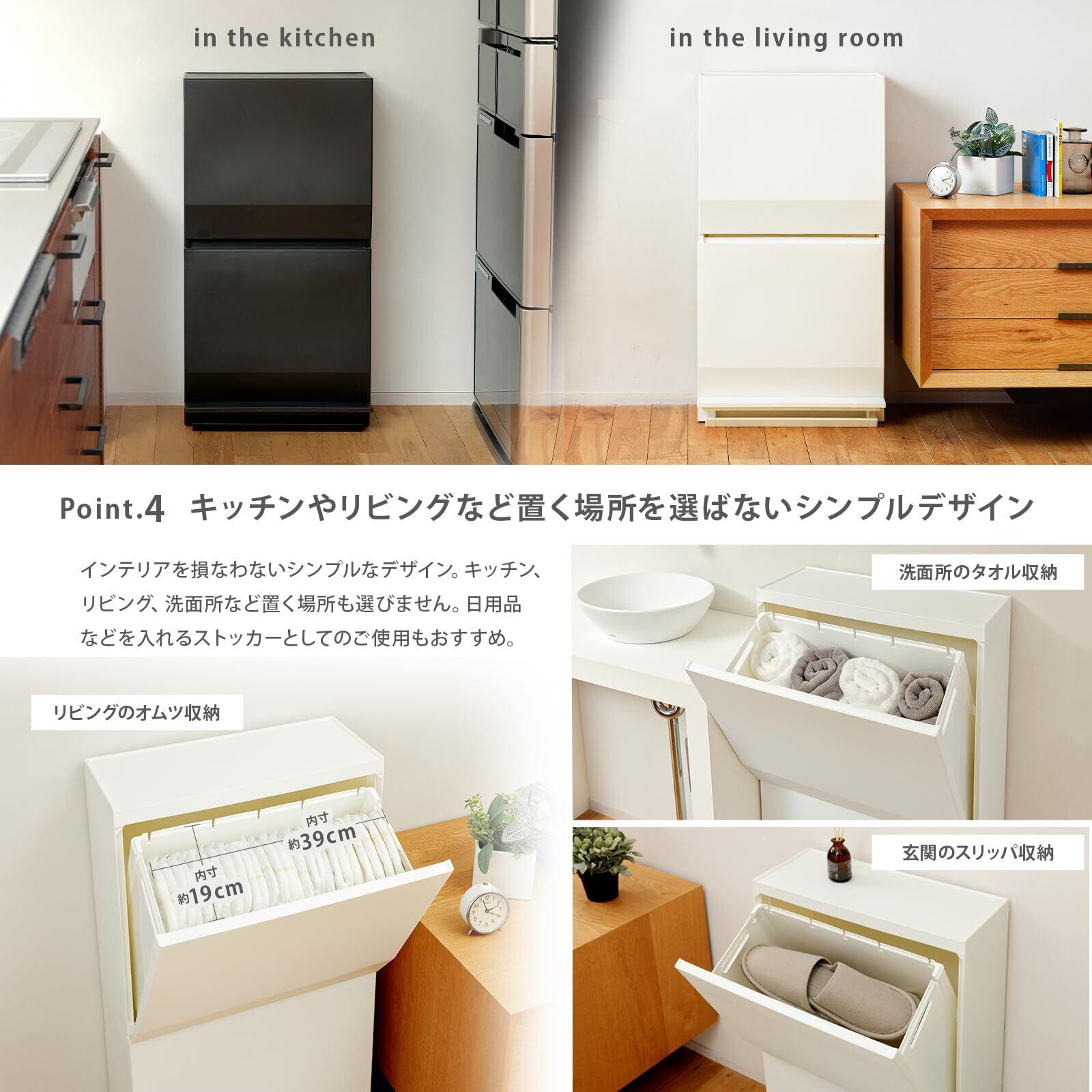 通路やキッチンに置いても邪魔にならない分別ストッカー。