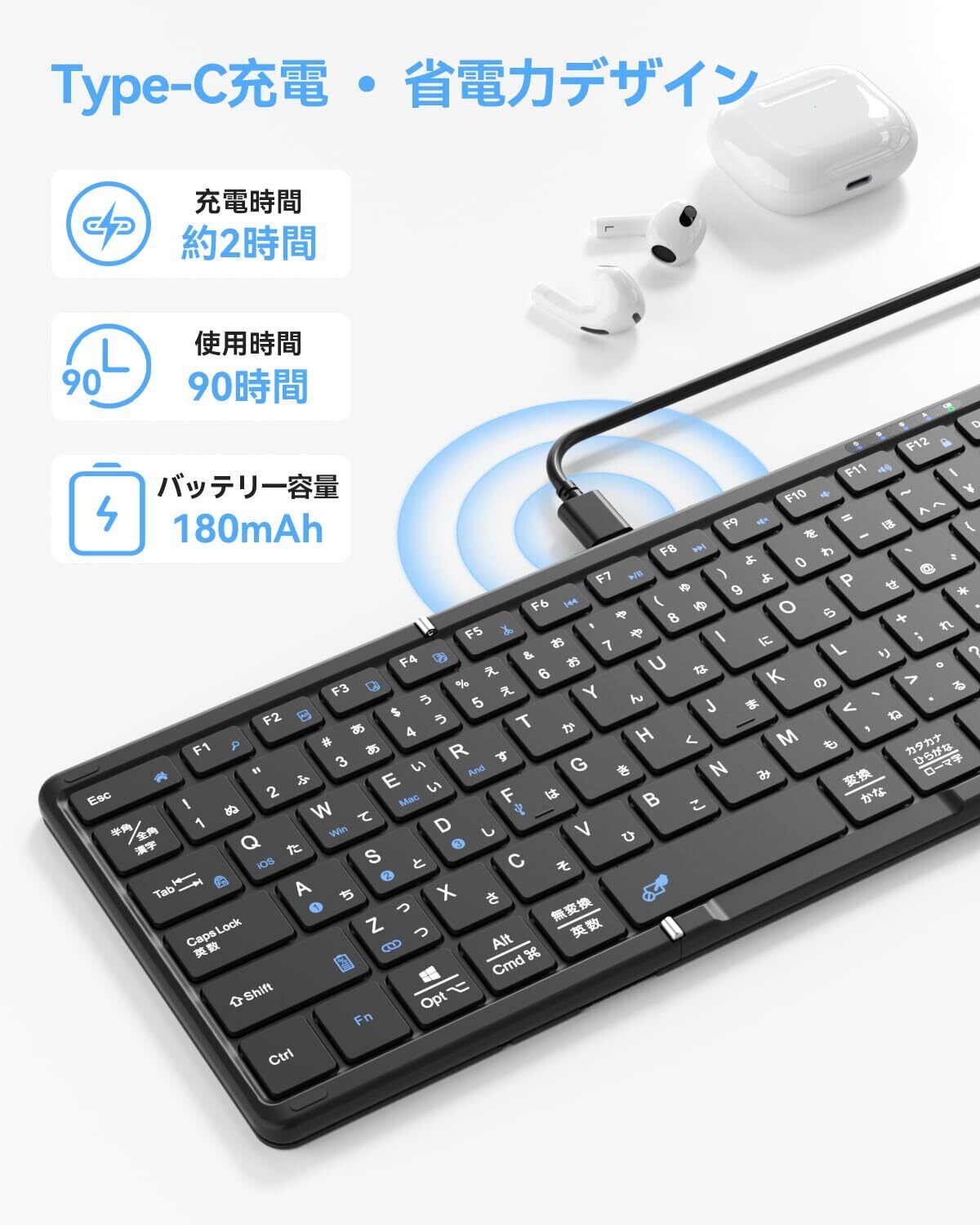 【Omikamo独家設計、高級な折り畳み式フルサイズキーボード】ipad キーボード bluetoothはOmikamo独自が開発した折り畳み式のフルサイズキーボードで、使用感とコンパクトさを重視しながら高級感を追求したワイヤレスキーボードです。キーの大きさも通常のと変わらないためとても打ちやすくて、打った感覚がノートパソコンと同じです。