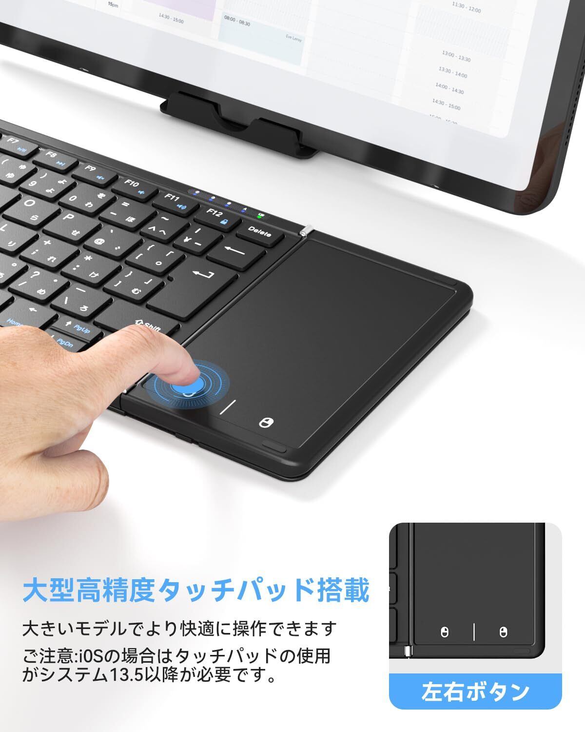 【高級版】Omikamo キーボード ワイヤレス 折り畳み式 ipad bluetooth 日本語配列 マルチペアリング ipad air タッチパッド付き iOS/Windows/Android/Mac/Google対応 無線 小型 コンパクト 薄型 ipad mini パンタグラフ 充電式 (黒)