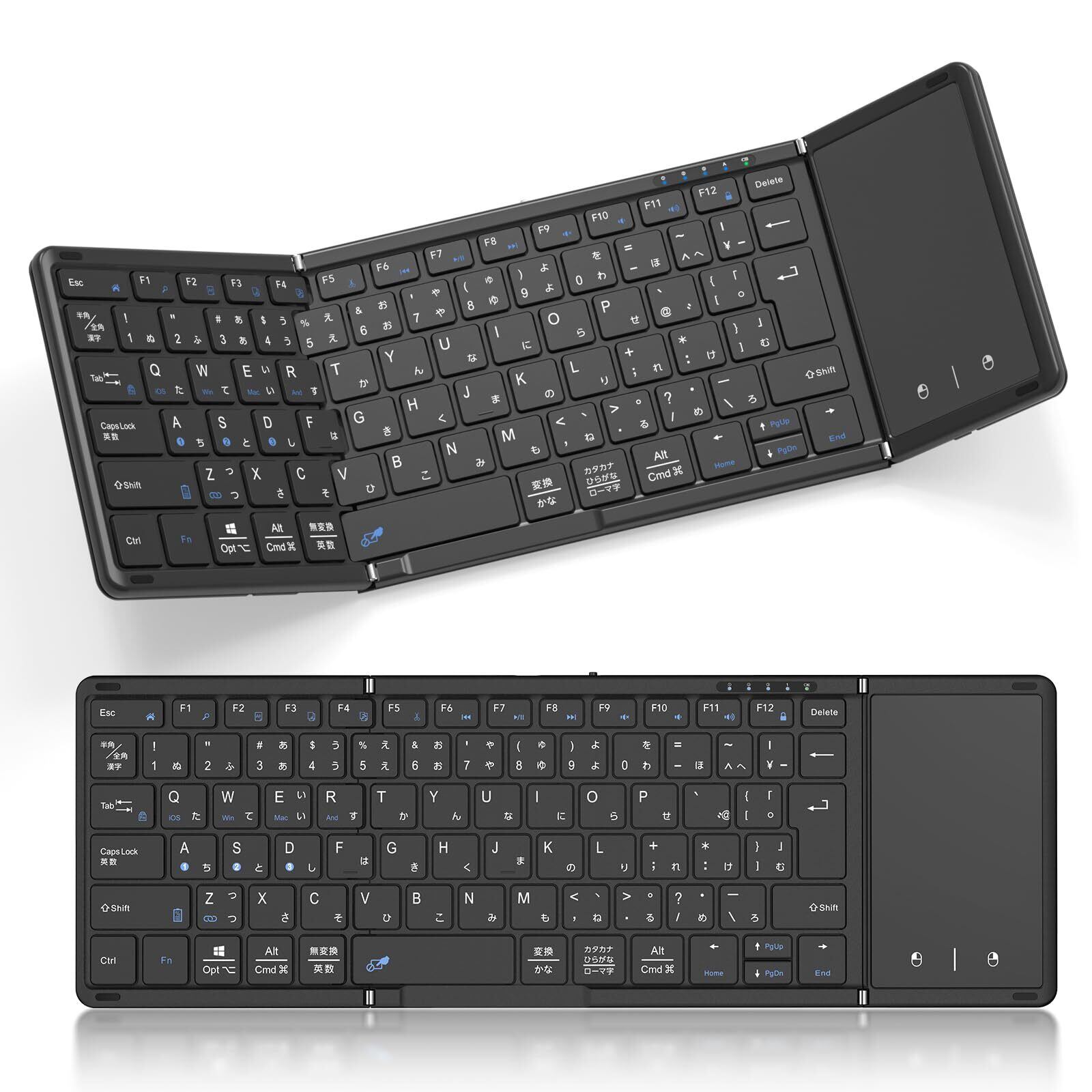 【高級版】Omikamo キーボード ワイヤレス 折り畳み式 ipad bluetooth 日本語配列 マルチペアリング ipad air タッチパッド付き iOS/Windows/Android/Mac/Google対応 無線 小型 コンパクト 薄型 ipad mini パンタグラフ 充電式 (黒) | BASE SHOP