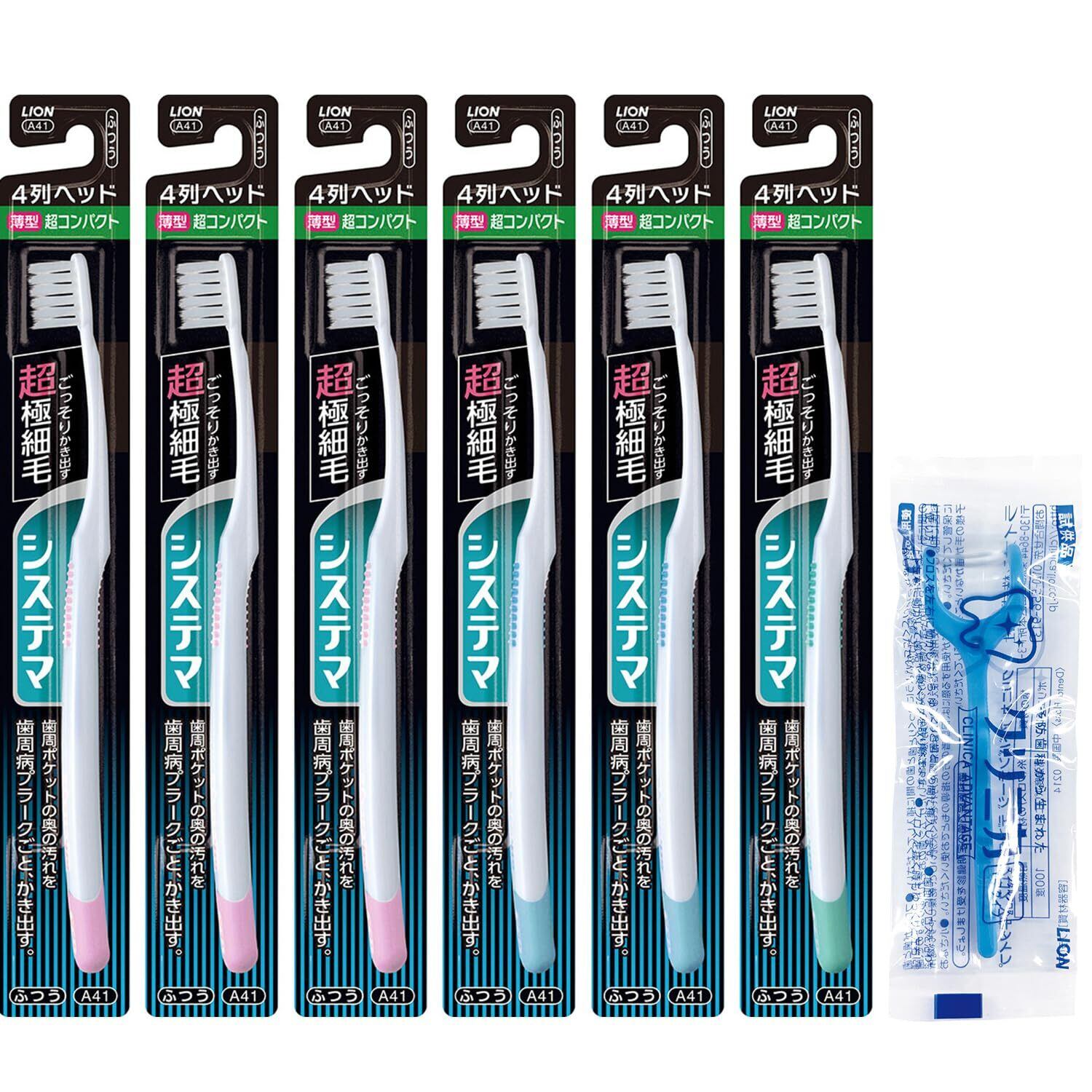 【Amazon.co.jp限定】システマ ハブラシ 超コンパクト 4列 ふつう 歯ブラシ 歯周病 セット 6本(※色は選べません) +フロス付き