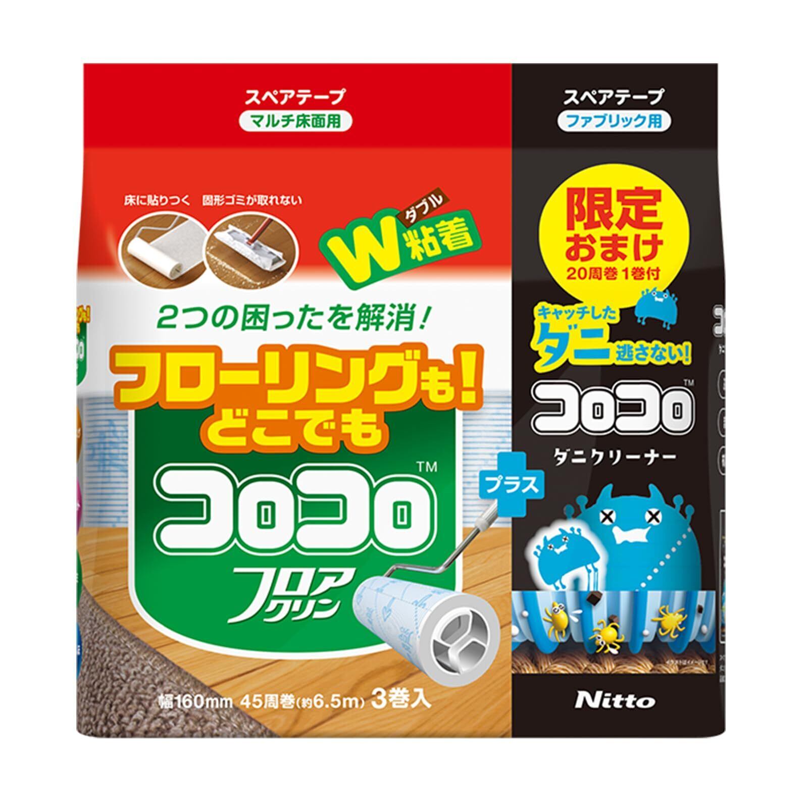 ニトムズ コロコロ スペアテープ フロアクリン 45周 3巻 + ダニクリーナー 20周 1巻入 お試し ダニ対策 カーペット 160mm幅 CC8966