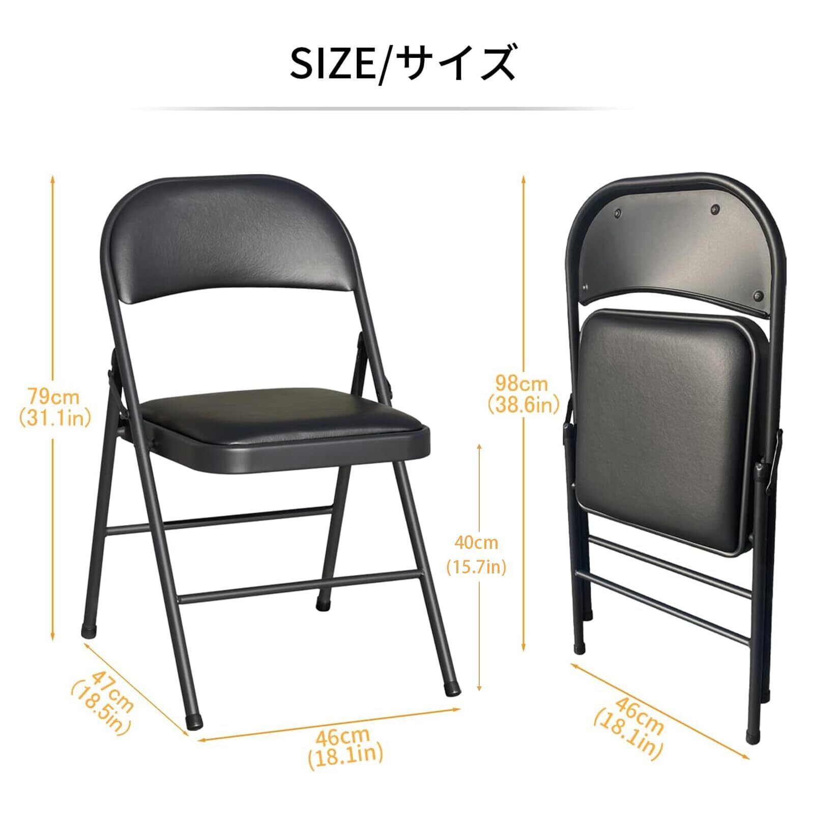 BOOSDEN パイプ椅子 4脚セット 折りたたみチェア ミーティングチェア 会議椅子 背もたれ 折り畳み イス ダイニングチェア いす 折りたたみ 金属製 省スペース イベント シンプル ブラック | BASE SHOP