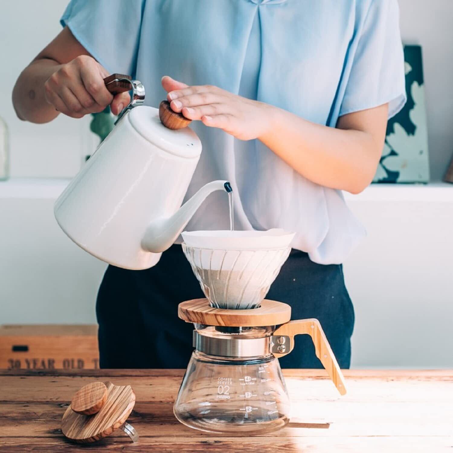 オリーブウッドを組み合わせた耐熱ガラス製ドリッパー