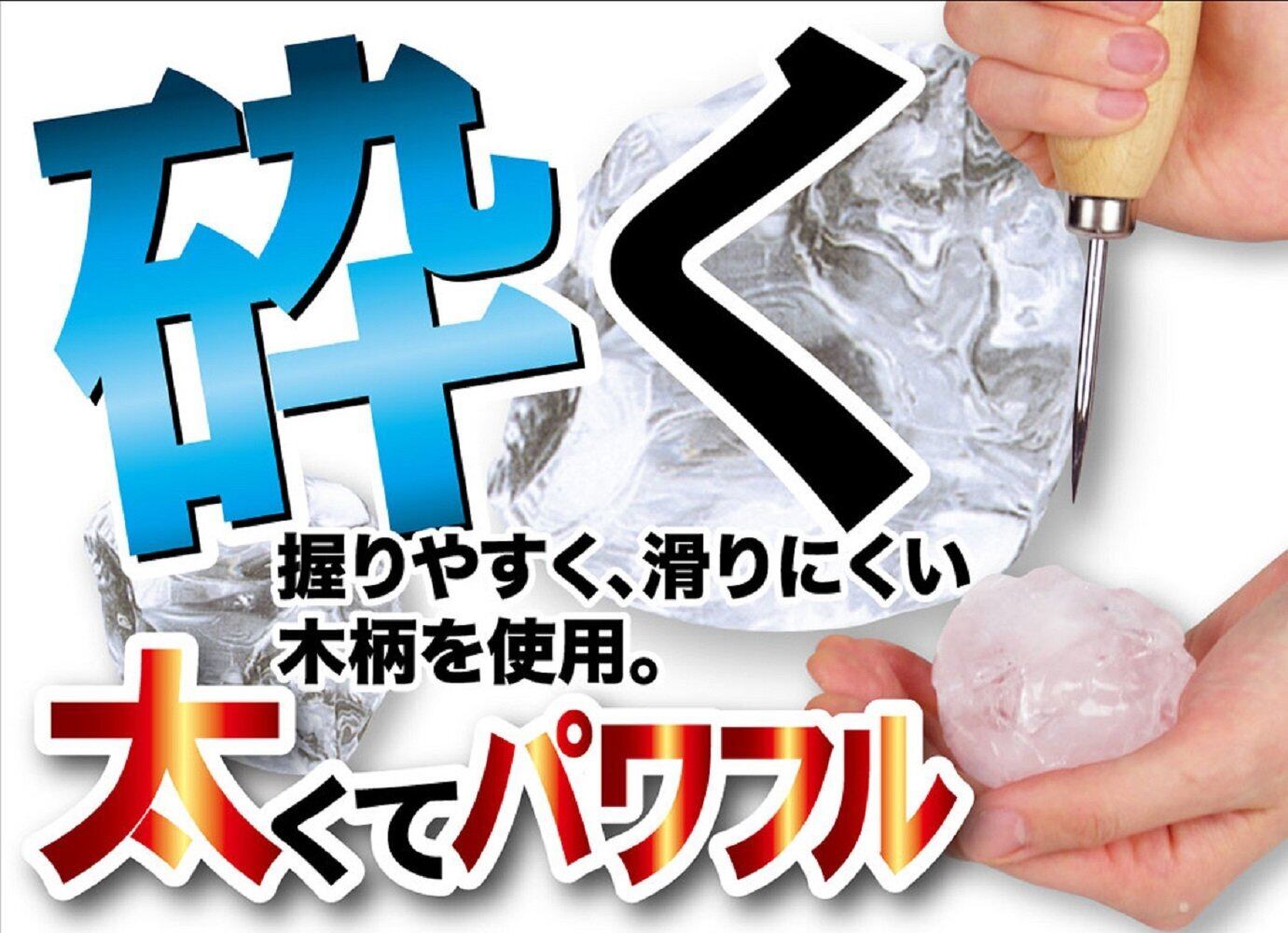 柄部分には氷を砕く鉄鋳物製の尻金