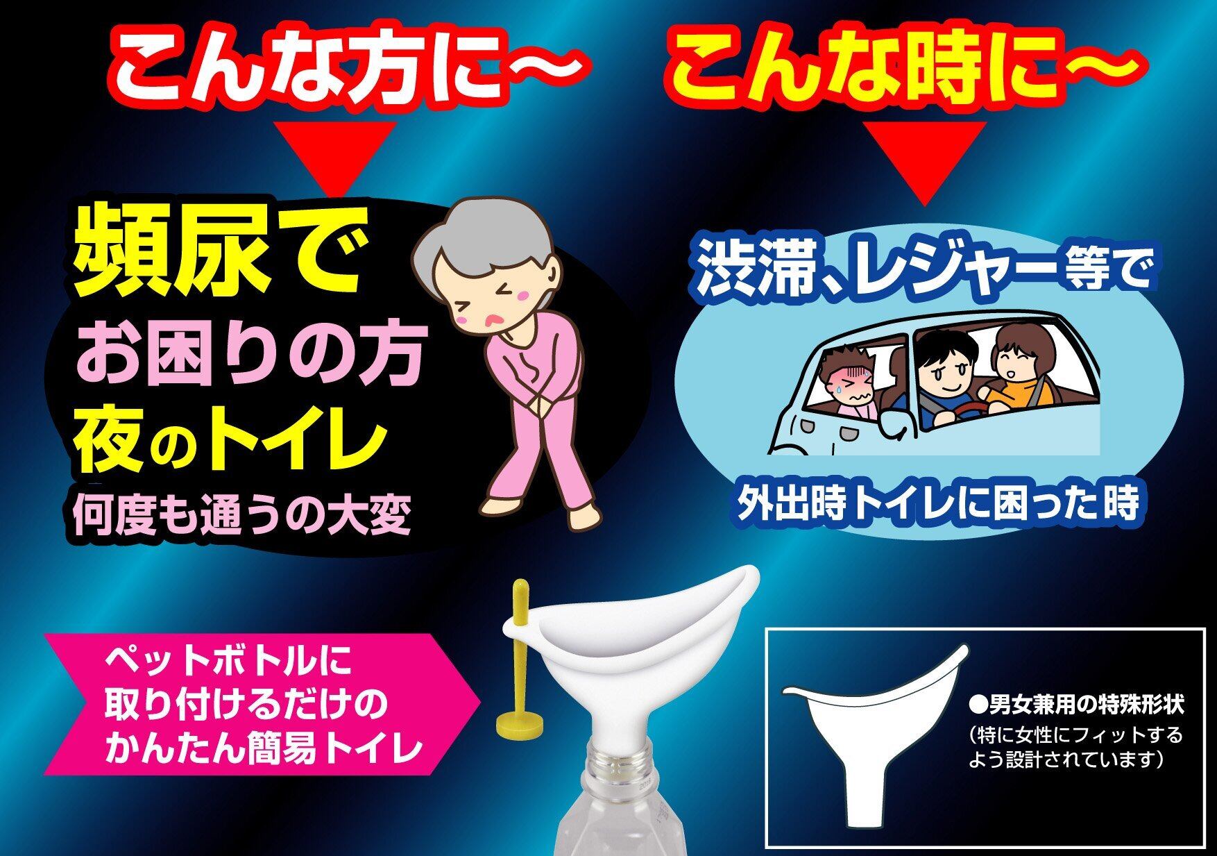 ●男女兼用の特殊形状、簡易栓付き。