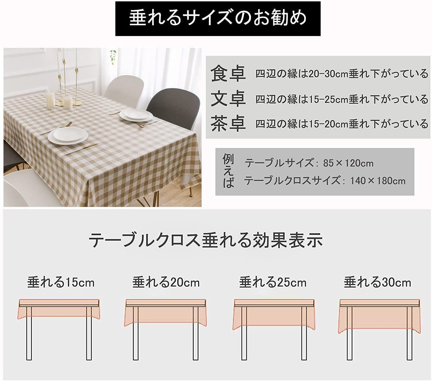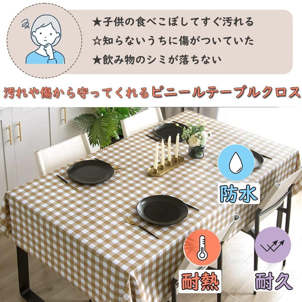 Forhomelife テーブルクロス ビニール 撥水 テーブルカバー 長方形 北欧 耐熱 すべり止め 長さ調節 撥水加工 おしゃれ PVC 厚手 120x150cm ブラウン 格子柄 | BASE SHOP