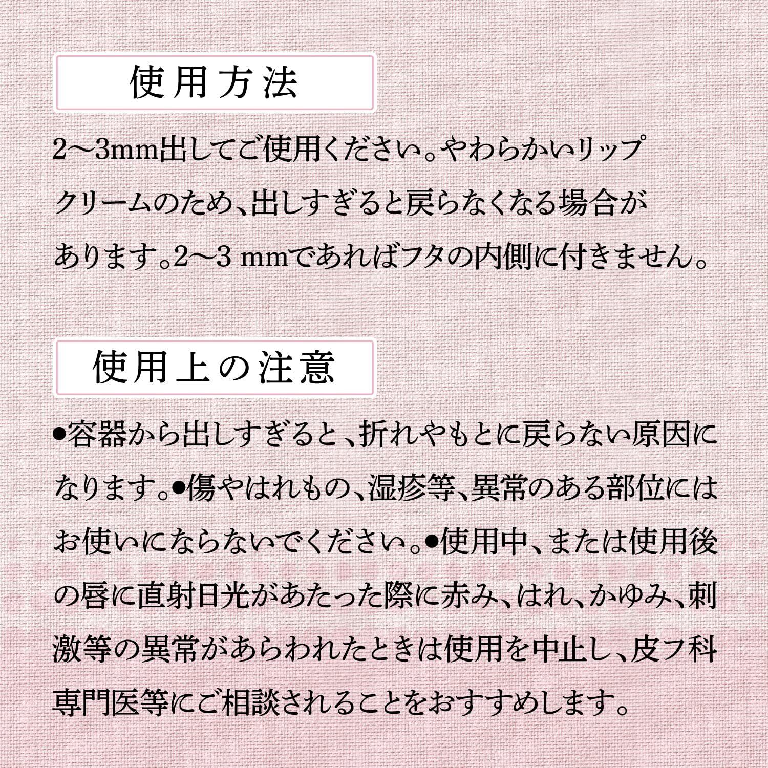 ●軟らかいリップクリームのため、出しすぎると戻らなくなる場合があります。