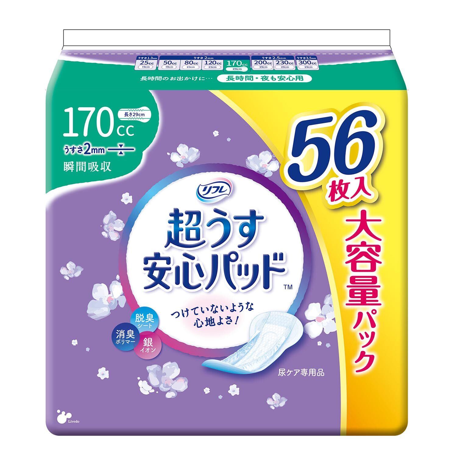 リフレ 超うす安心パッド 長時間・夜も安心用 大容量パック 170cc 56枚入