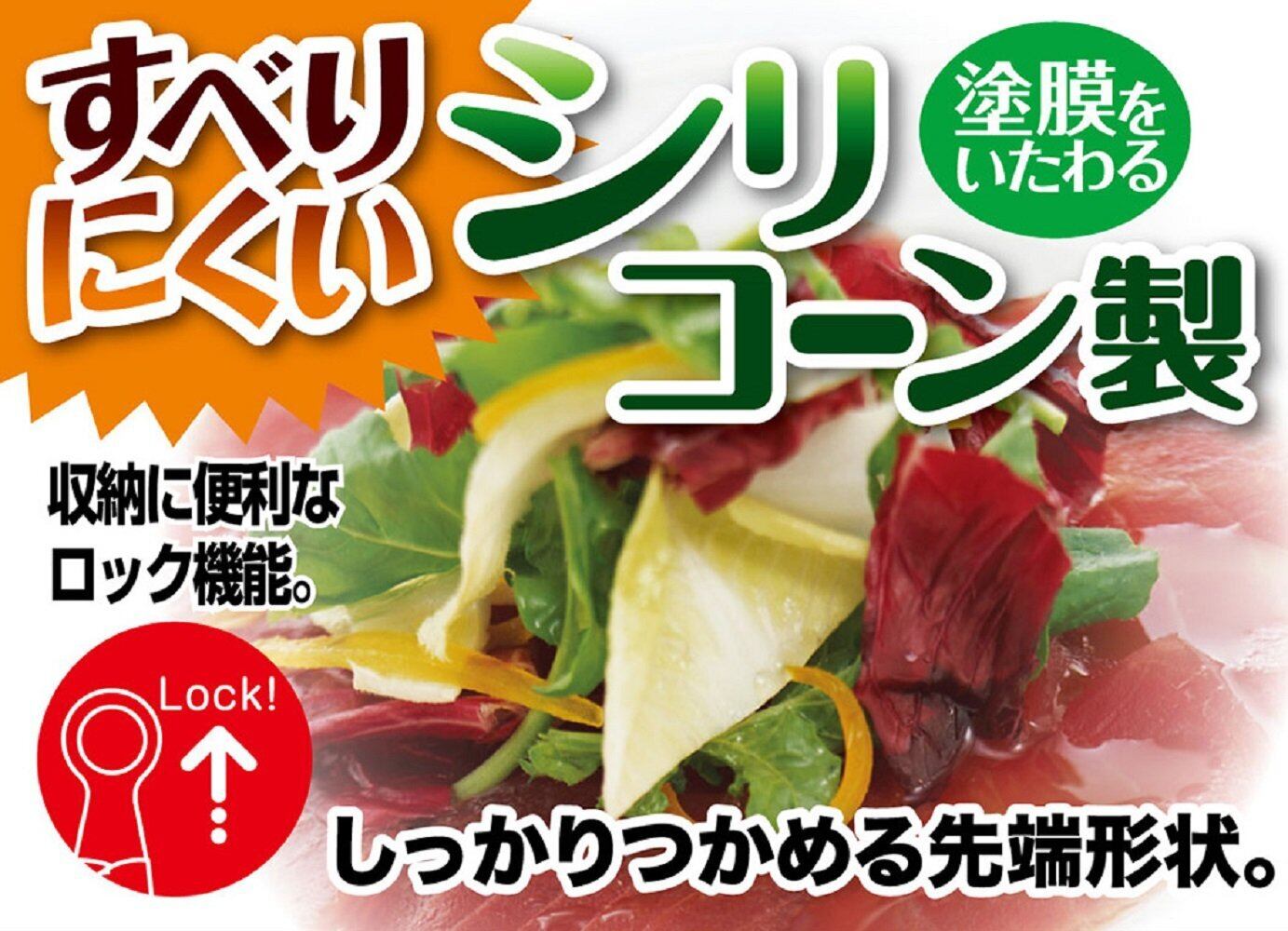 フックを引き上げるとトングが閉じるロック機能付で収納に便利