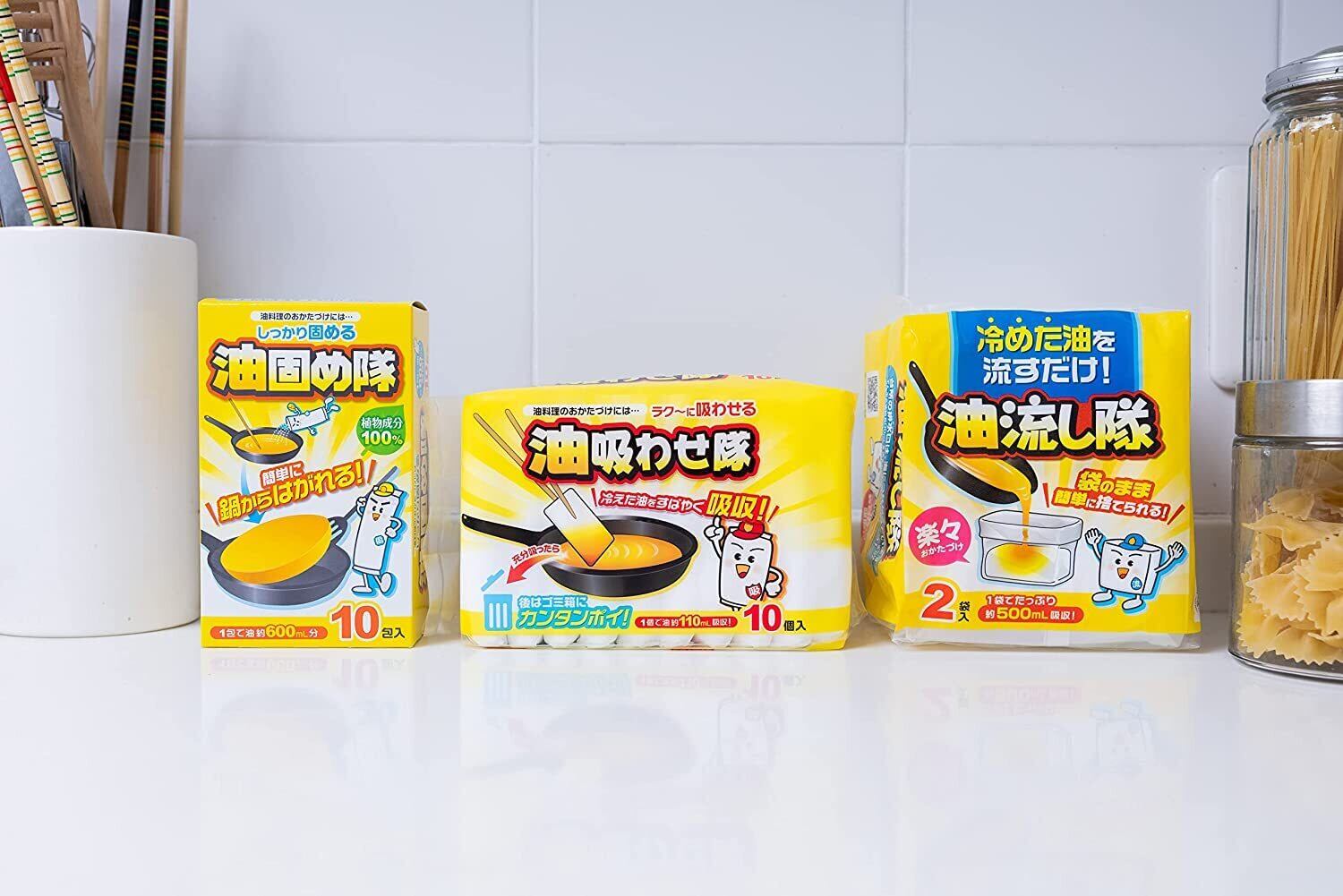 1包で600MLの油を固めるので、手やキッチンを汚さずに簡単に油を捨てられます。