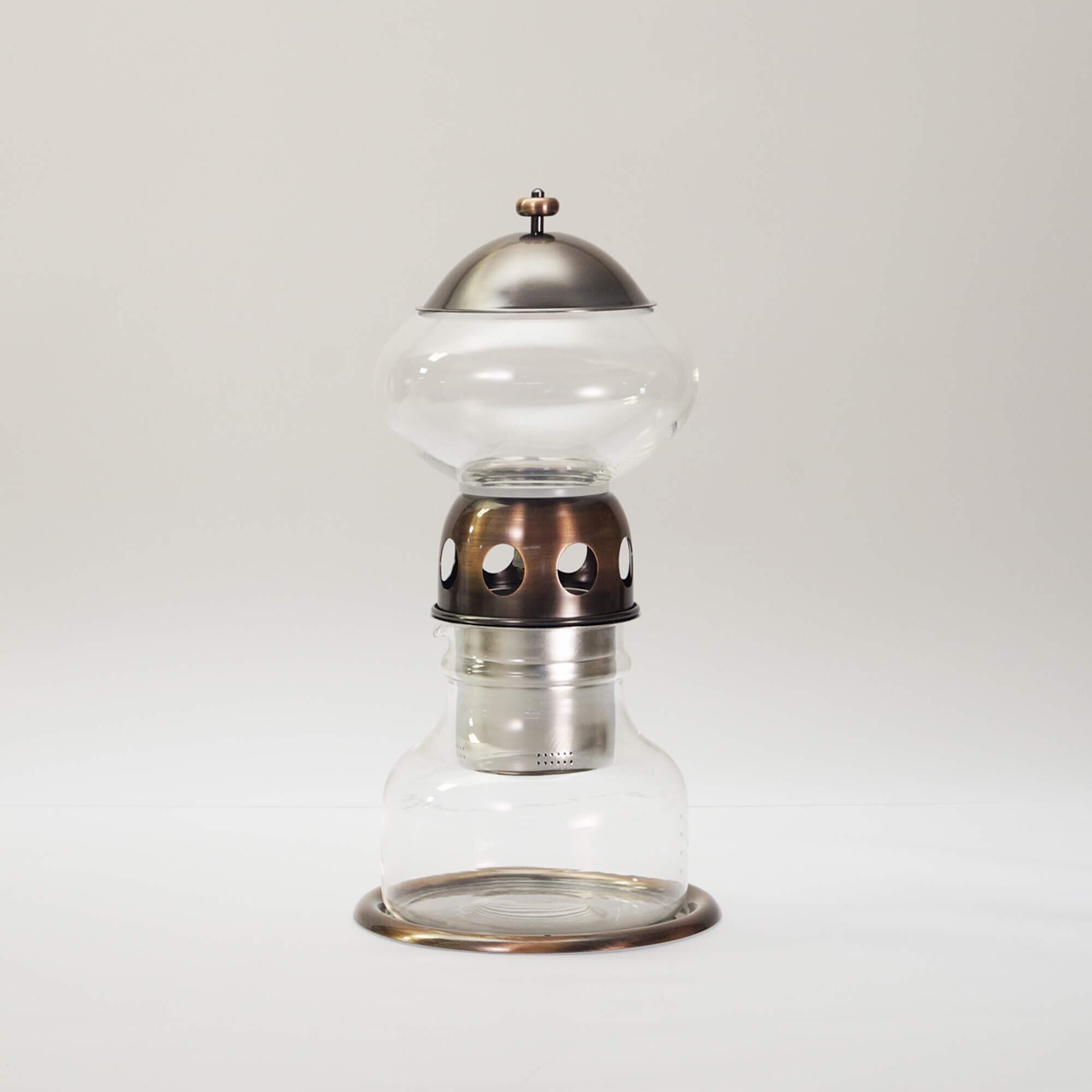 ガラスボール:耐熱ガラスフタバネ・コック本体・分水器・コックシャフト・バスケット:ステンレスフタ・分水器カバー・コックシャフトツマミ・トレー:真鍮コックパッキン:シリコーンゴム