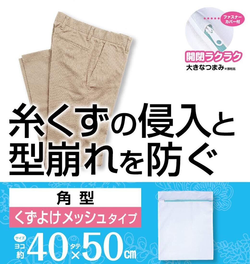 ○細かい網目で糸くずや毛糸くずの侵入を防ぎ衣類をやさしく守ります。○布地のすり切れボタンなどの付属品の傷みなどをおさえます。○衣類を傷めないようにネットの縫い代をバイアステープでくるんであります。○ファスナーカバーが付いているのでファスナーの引き手(つまみ)による他の洗濯物の傷みを防ぎます。○乾燥機にもそのまま使用できます。○家庭用ドライ洗剤でも使用まるできます。[洗濯物の目安]・トレーナーなら…1枚位・スラックスなら…1本位・フリースなら…1枚位・ブラウスなら…2枚位