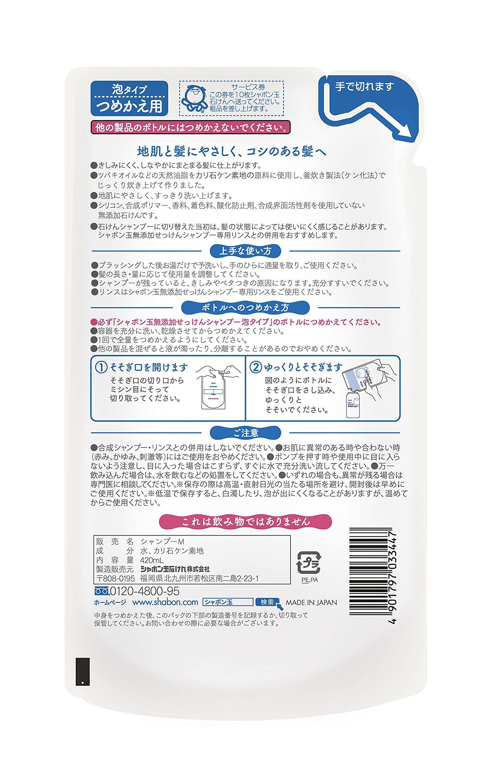 シャボン玉石けん無添加 せっけんシャンプー 泡タイプその他詰替え用 420ミリリットル (x 1)