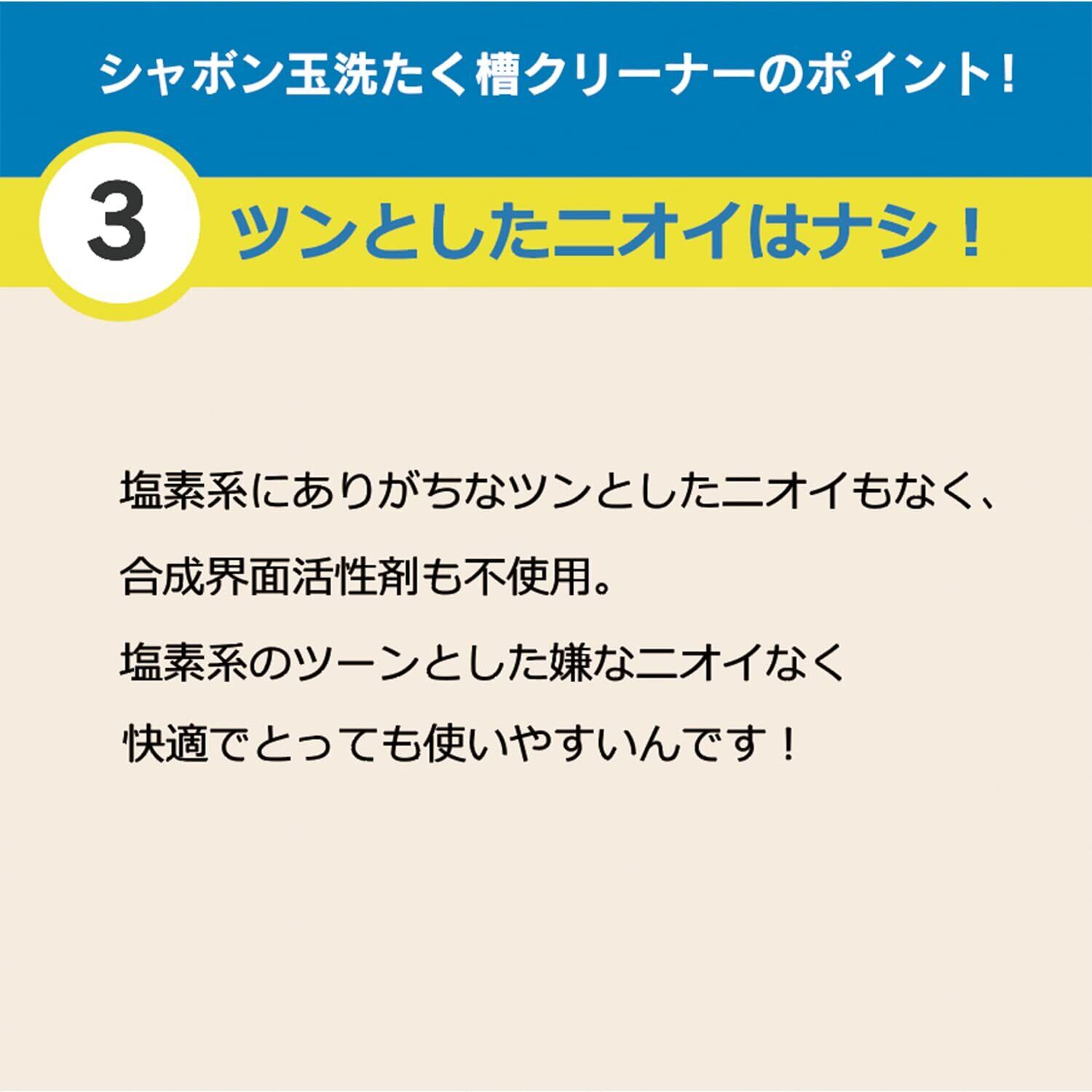 ●酸素系なので、発泡パワーで汚れを落とし、塩素系のツーンとした嫌なニオイもありません。