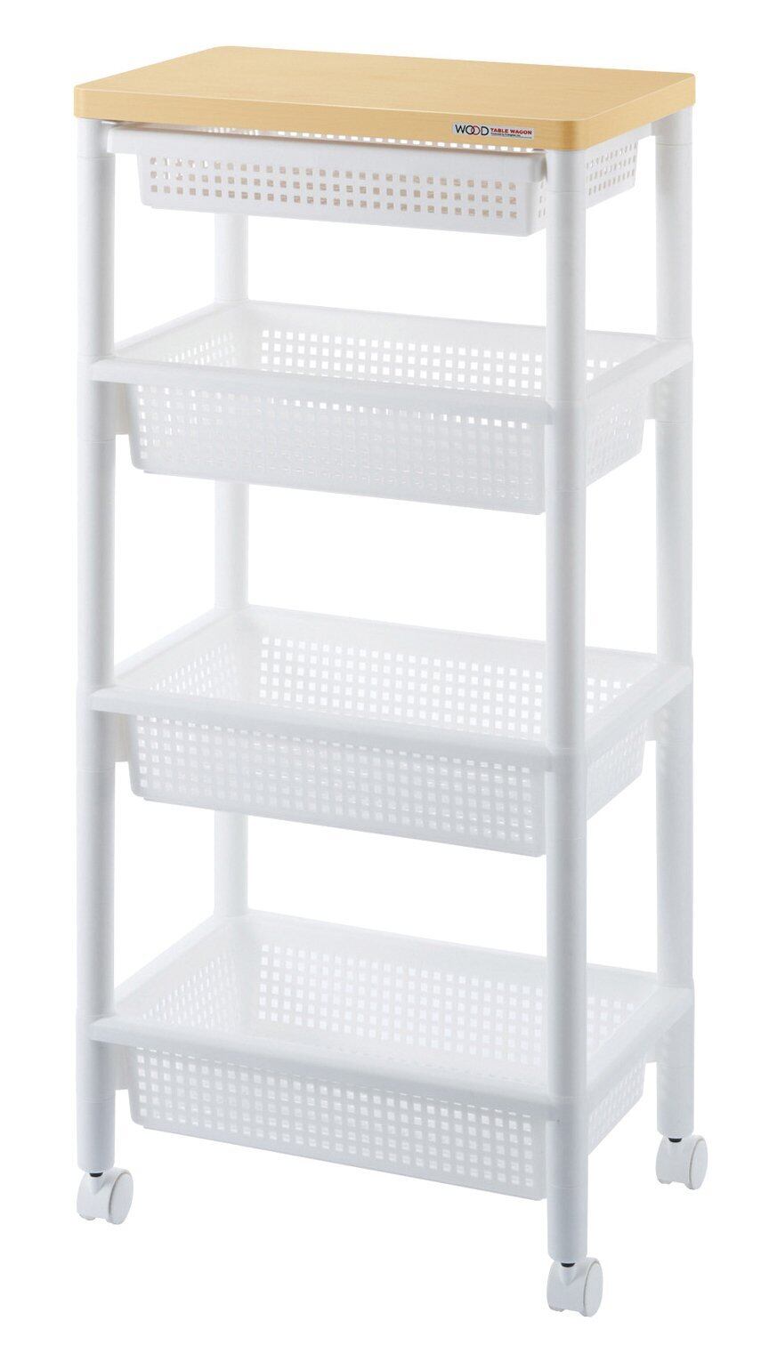 不動技研 ウッドテーブルワゴン WTW-4HS 引き出しバスケット付 ホワイト F2492