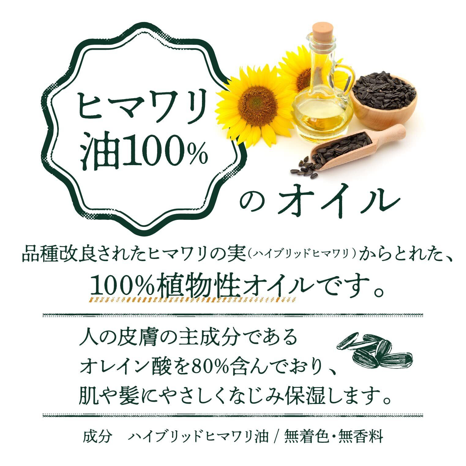 ひまわりの実からとれた、100%天然の植物性美容オイル。お肌や髪にやさしくなじみ、しっとりとした髪やお肌に。