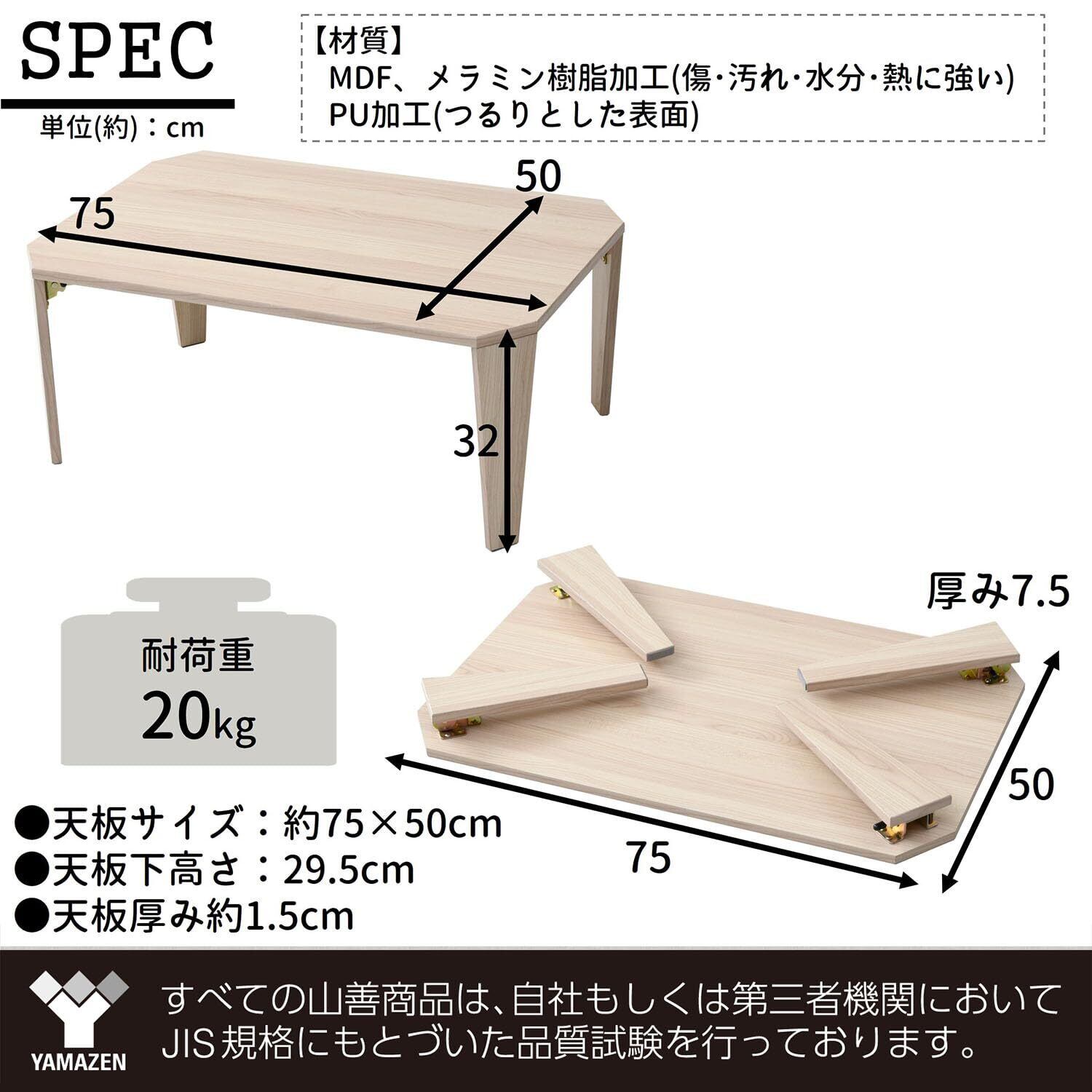 山善(YAMAZEN) ローテーブル 折りたたみ 幅75×奥行50×高さ32cm 水分・熱に強い天板 傷防止フェルト付き テーブル 折れ脚 完成品 ウッドナチュラル MTWL-7550(WNA) | BASE SHOP