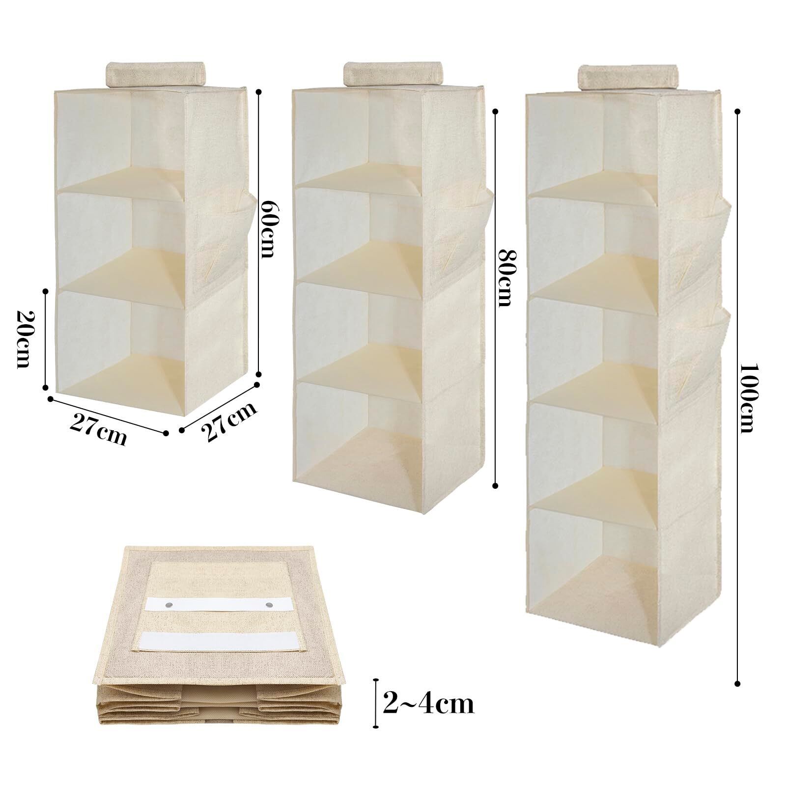 YRCBEHFU 吊り下げ収納 【最新強化版】 クローゼット 収納吊り下げ 4段 PPボード 大容量 衣類ラック 帽子/鞄 収納/旅行/出張 取付簡単 折り畳み式(ベージュ、27x27x80cm) | BASE SHOP