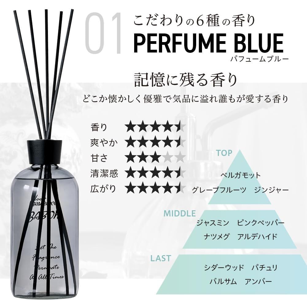 プルプラ ZABON リードディフューザー ルームフレグランス 1000ml 大容量 約12ヶ月分 芳香剤 香りのサンプル付 スティック20本付き (パフュームブルー)