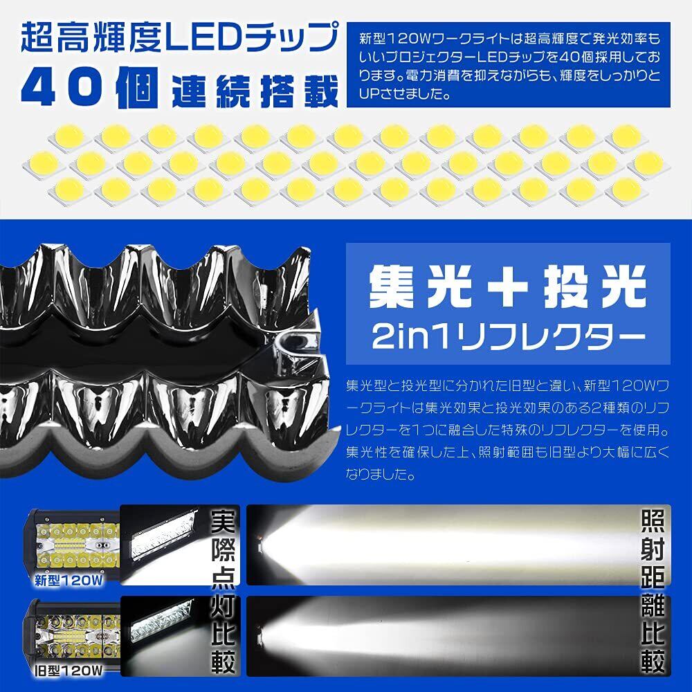 【HIKARI独占販売】LED作業灯 デッキライト ワークライト 120W 40枚チップ 投光器 8V-60V対応 27000LM 看板灯 自動車 船舶 集魚灯 前照灯 バックライト 集光&投光両立 防水 トラック用 2個セット「A-TW-LEDx2」