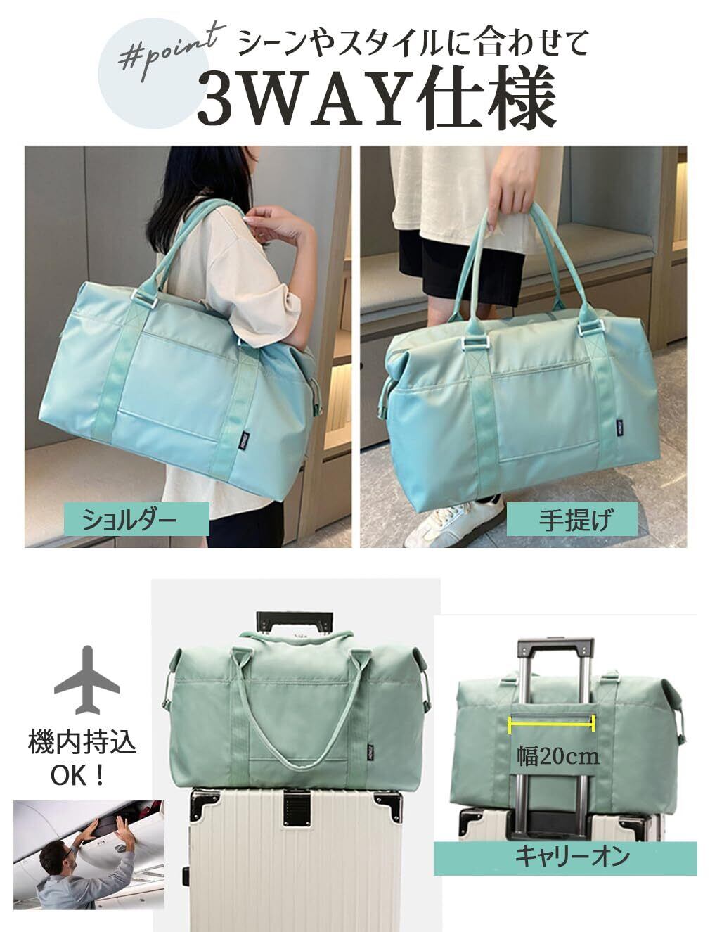 【大容量3wayボストンバッグ】たっぷり入る大容量サイズのボストンバッグが登場します!肩かけ、手提げ、キャリーオン、シーンによって3way使うことが出来ます。