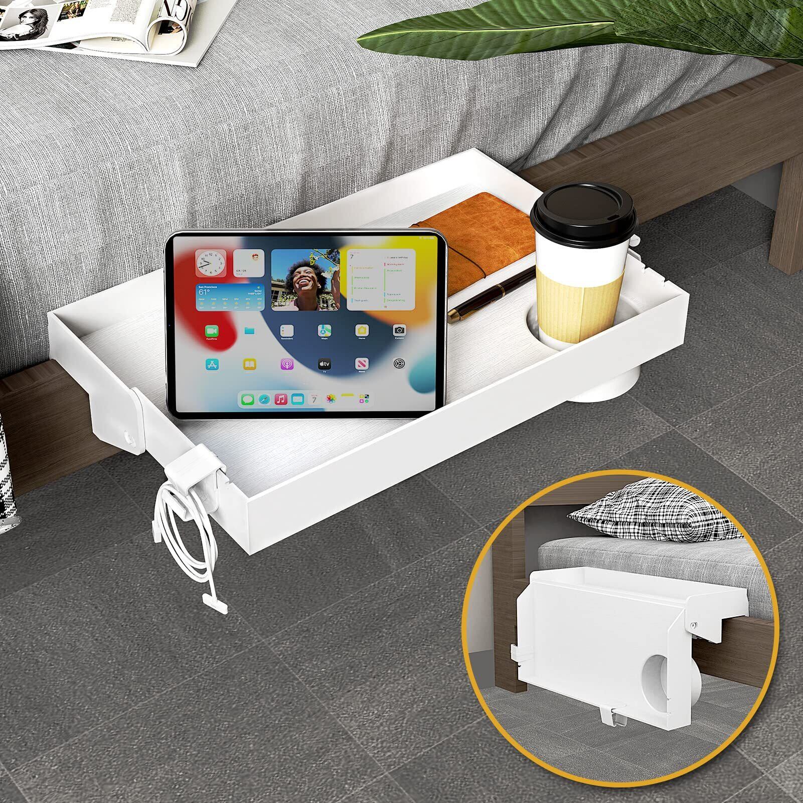 SPACEKEEPER ベッドサイドシェルフ 二段ベッド用ナイトテーブル 折りたたみ式 ベッド収納 多機能 寝室 自宅用 寮用 電話 エスプレッソ用 組立簡単 ホワイト