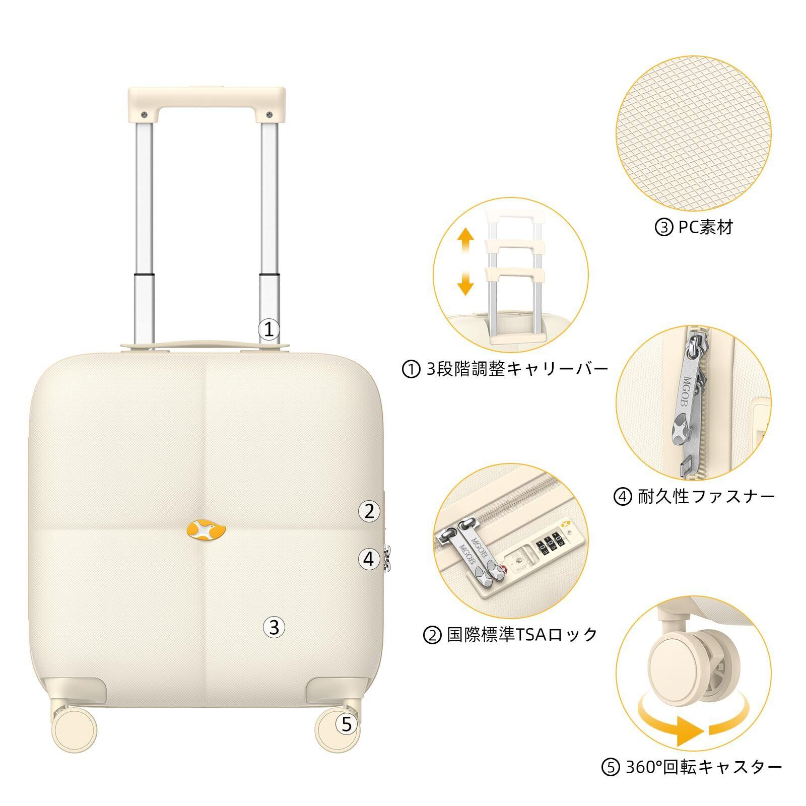 [MGOB] キャリーケース スーツケース 機内持ち込み キャリーバッグ 可愛い 超軽量 フック機能 耐衝撃 静音 ダブルキャスター TSAロック ファスナータイプ 旅行 ビジネス 出張 (ベージュ, SSサイズ 42L/1-3泊向き) | BASE SHOP