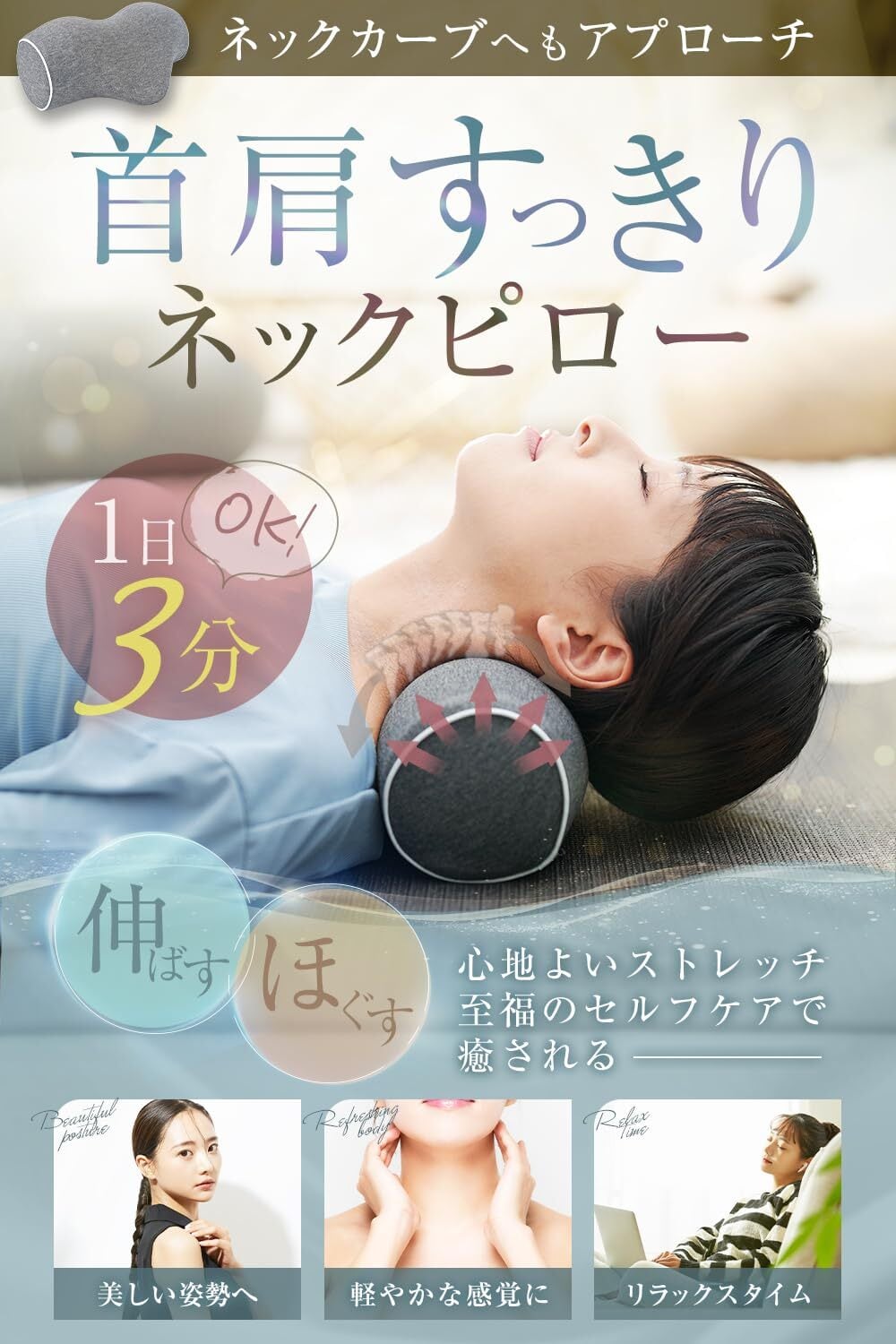 手で包み込むような、極上ネックアイテム、まるで人の手で優しく伸ばされるような感覚を実現しました。この絶妙なバランスが、首を自然に伸ばしながら負担をかけず、毎日のストレッチタイムを特別なリラックス体験へと導きます。