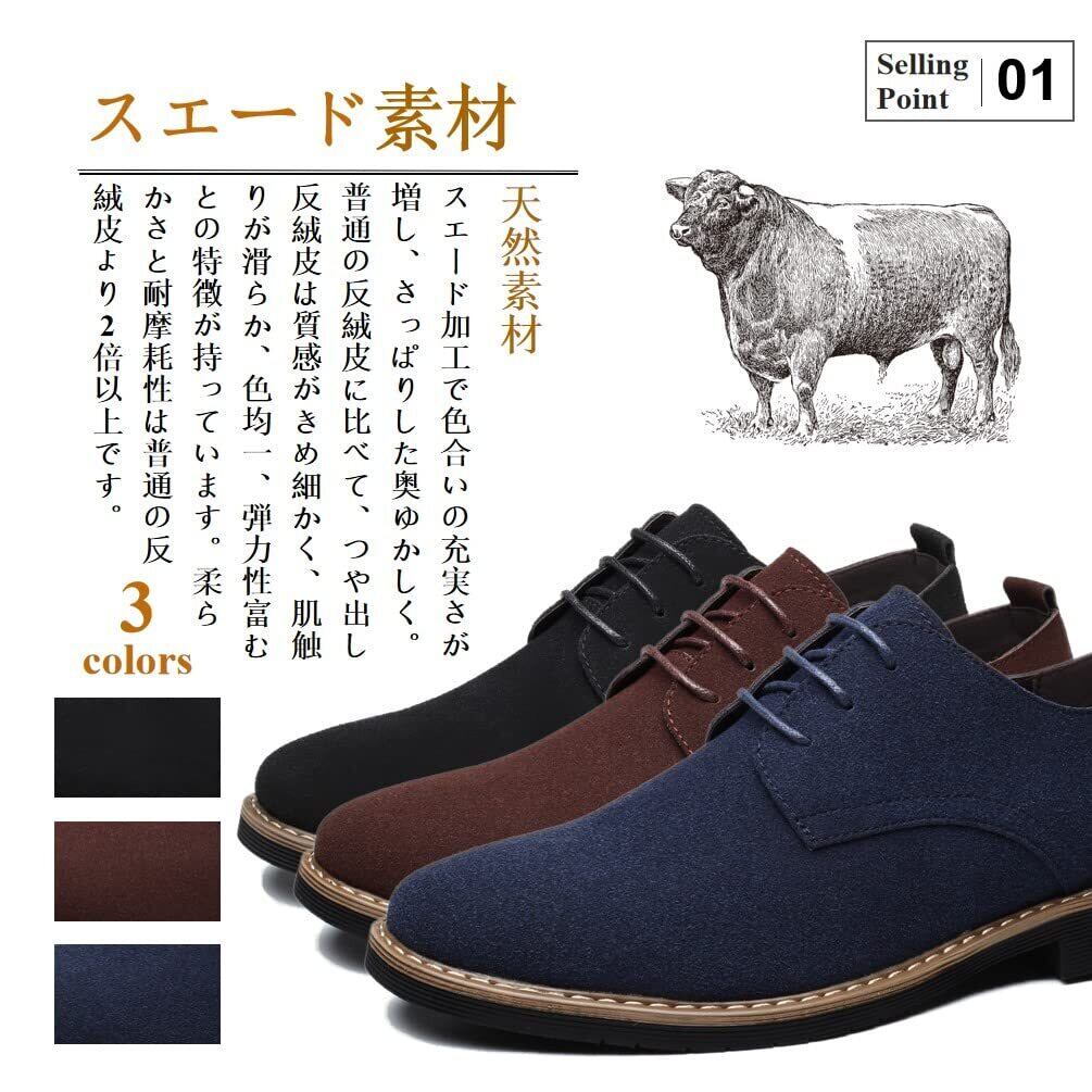 [Poerkan] スエードシューズ メンズ カジュアルシューズ 革靴 スウェード ビジネスシューズ 紳士靴 プレーントゥ レースアップ 通勤 ブラック ブラウン ブルー 24.5cm-29.5cm