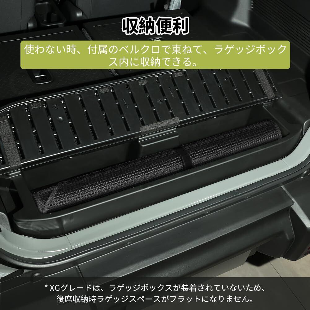 【適合車種・ジムニー専用】ジムニー[JB64W]18.07~(1型~)/5MT/4AT/4WD/XC/XL ;ジムニーシエラ[JB74W]18.07~(1型~)/5MT/4AT/4WD/JC/JL;車種専用設計なので、隙間がないようにぴったり装着できます。使わないときは付属のベルクロで束ねて、ラゲッジボックスに収納可能です。