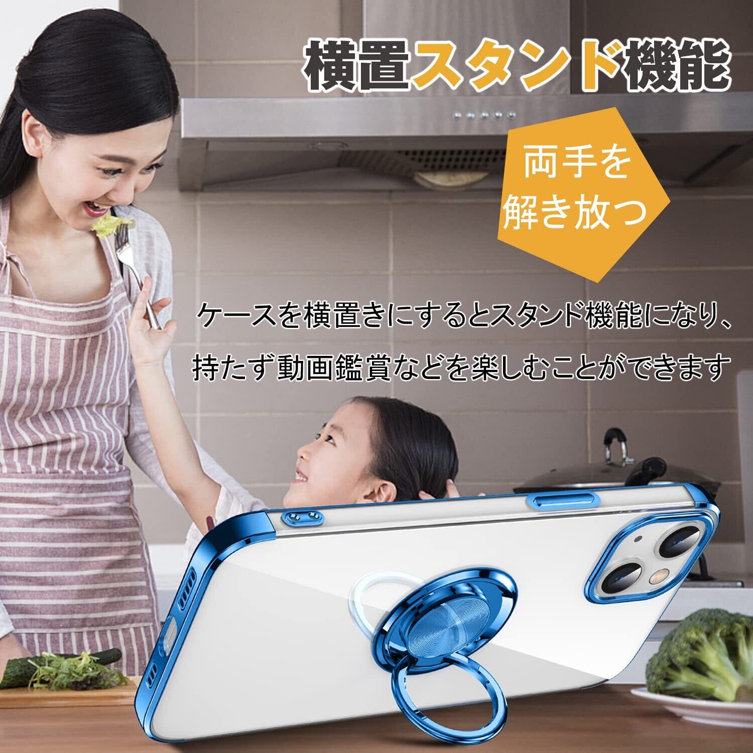 iPhone 14 用 ケース クリア リング付き アイホン 14 カバー 透明 おしゃれ OURJOY スマホケース メッキ加工 ソフトケース 耐衝撃 軽量 薄型 ストラップホール付き スタンド機能 車載ホルダー対応 携帯ケース • ブラック | BASE SHOP