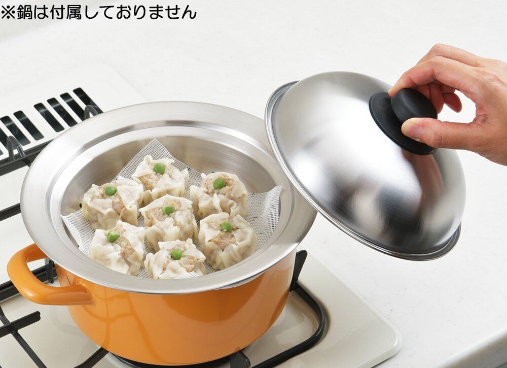 お手持ちのお鍋にのせれば蒸し器に早変わり。たっぷり蒸せるドーム型