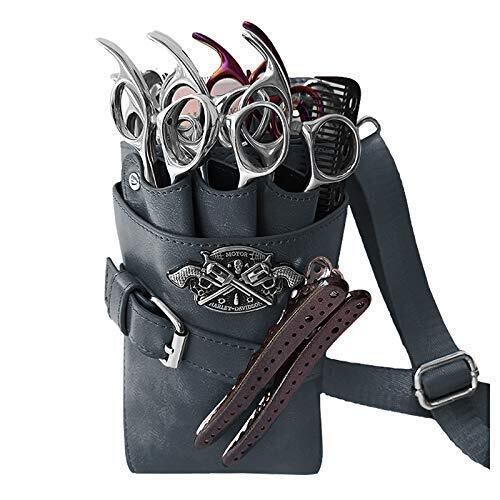 Umoraシザーケース シザーバッグ 美容師 理容師 PUレザー 収納ケース ツールバッグ ヘアカット トリマー プロ用 大容量(グレー)