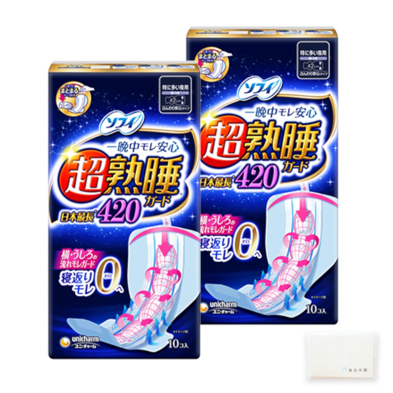 ソフィ 超熟睡ガード 特に多い日の夜用 羽つき 42cm(10枚入*2コ) 生理用品 ナプキン オリジナルティッシュ付 まとめ買い