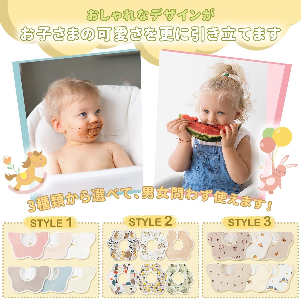 [Comfort U] よだれかけ ベビー ビブ スタイ 6枚セット 4層構造 二重ガーゼ 綿 防水シート入り 吸水速乾 柔らかい 花びら型 360度回転可 赤ちゃん 回転使用エプロン スナップボタン 食事用スタイ 女の子 男の子 保育園用 出産のお祝いギフト | BASE SHOP