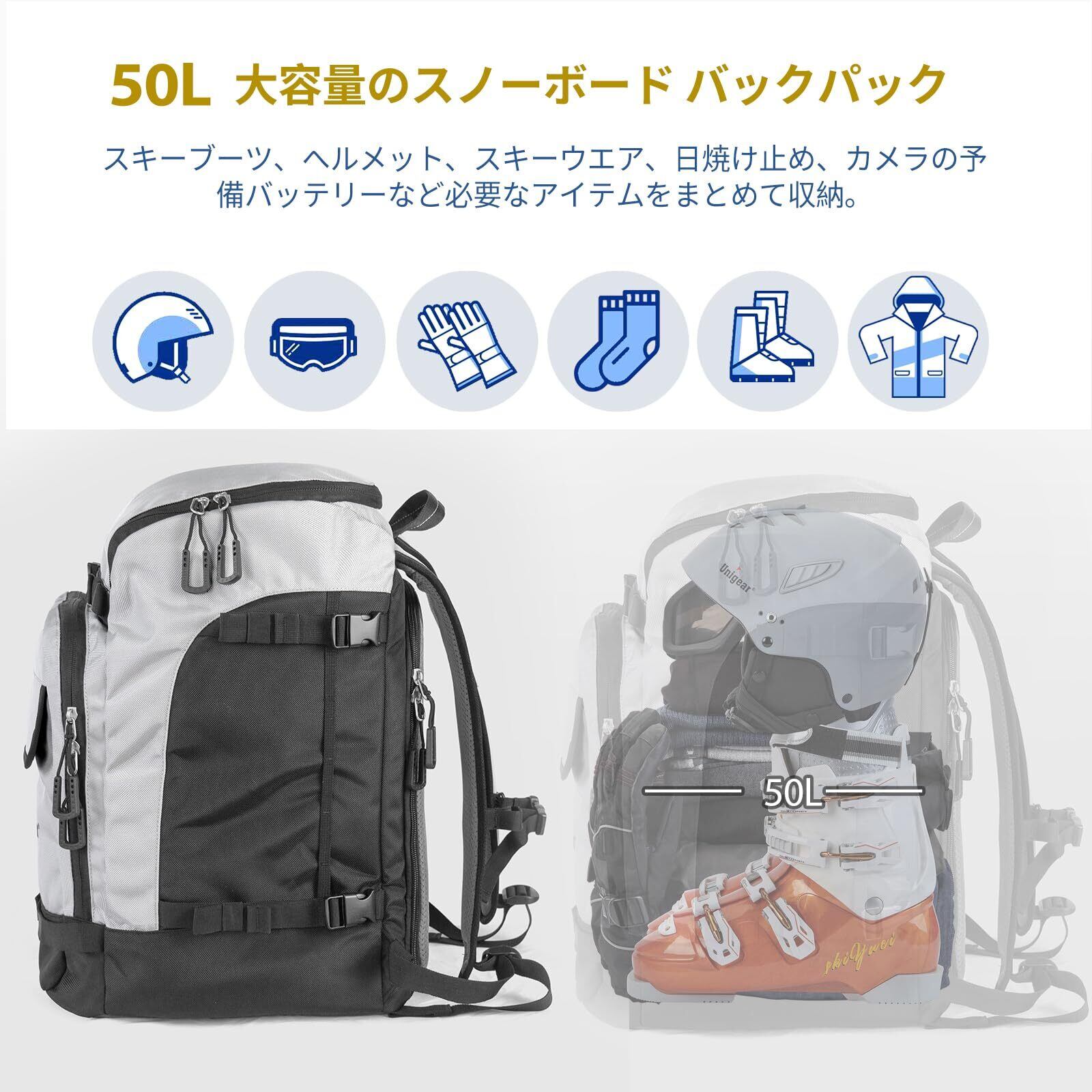 Unigear スノーボード バックパック スキー ブーツバッグ 大型 スキーヘルメット バッグ 大容量 50L 7色